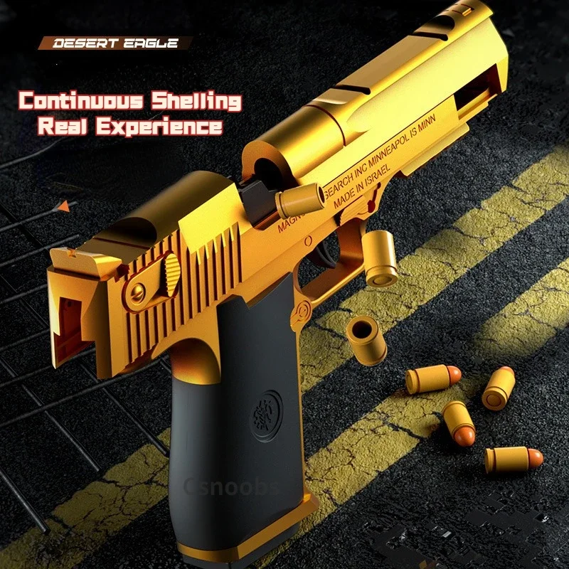 Continuous Fire Pistol Desert Eagle Mechanical Empty Hanging Soft Bullet Toy Gun Shell Ejection Decompression Toy Gift for Boys