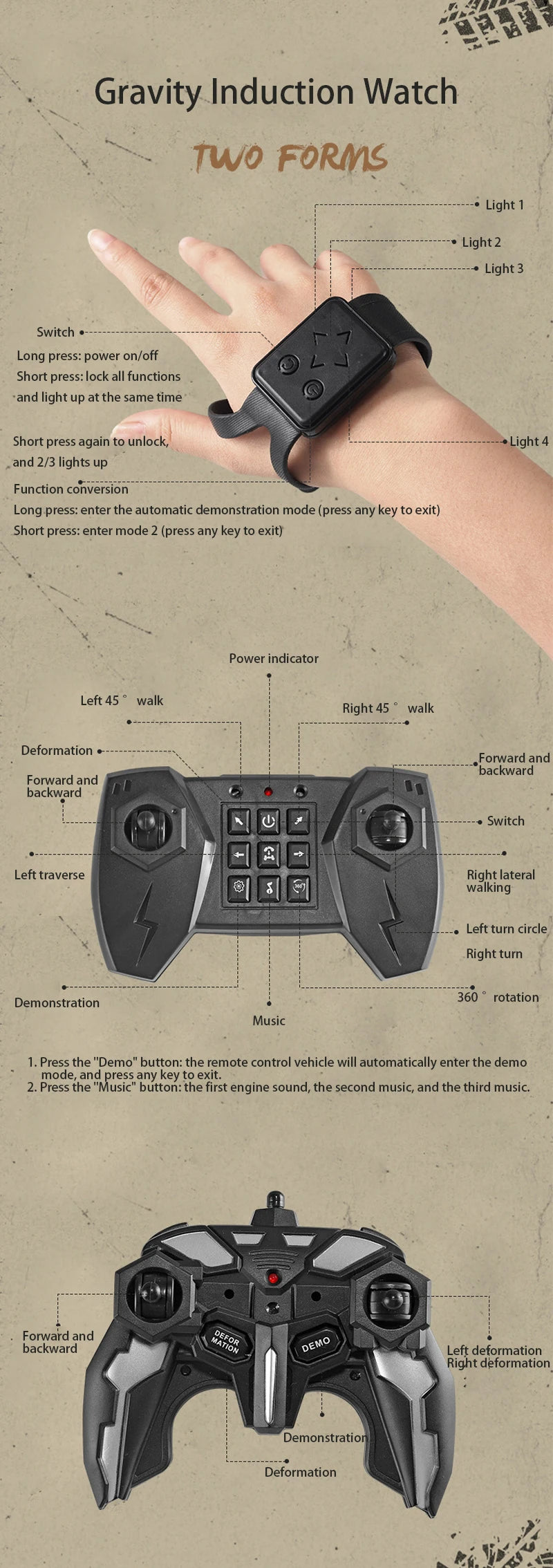 4WD Stunt Drift Car LED Electric Cars 2.4G Gesture Induction Deformation Twist Remote Controlled Car Electronic Kids Toys Gifts