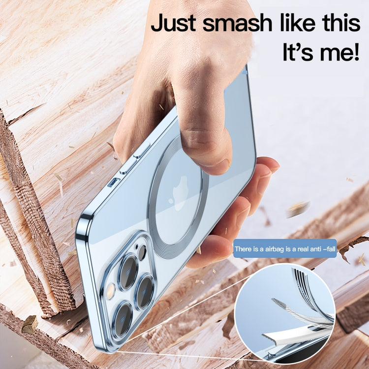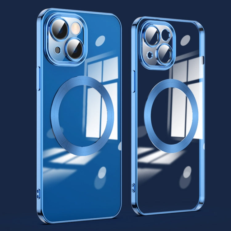 For iPhone 14 Lens Protector MagSafe Electroplated Phone Case (Navy Blue)