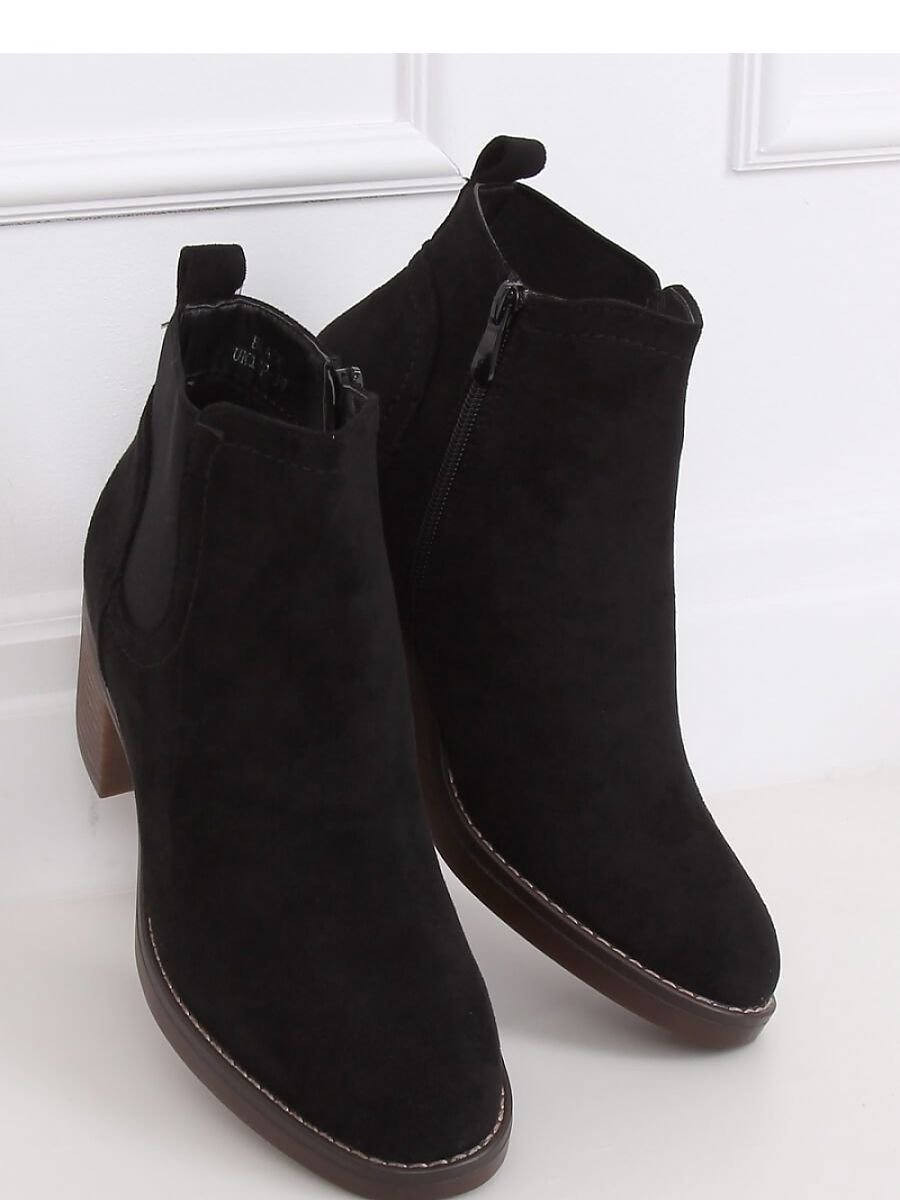 Women's boots on a wide 6 cm heel. Classic model that will be perfect in every everyday situation: ) A convenient solution is a zipper on the side of the upper and an interesting element is an elastic insert referring to slippers. Don't be persuaded any longer: ) They are made of ecological suede and inside is lined with soft fur.
