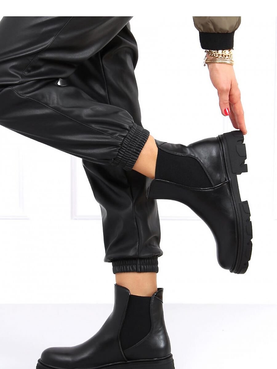 Women's boots ? Women's slippers on a high sole. They have a black color that fits everything and a timeless cut with elastic inserts on the sides. These shoes are impressive! They are made of ecological leather and the inside is lined with soft fur.