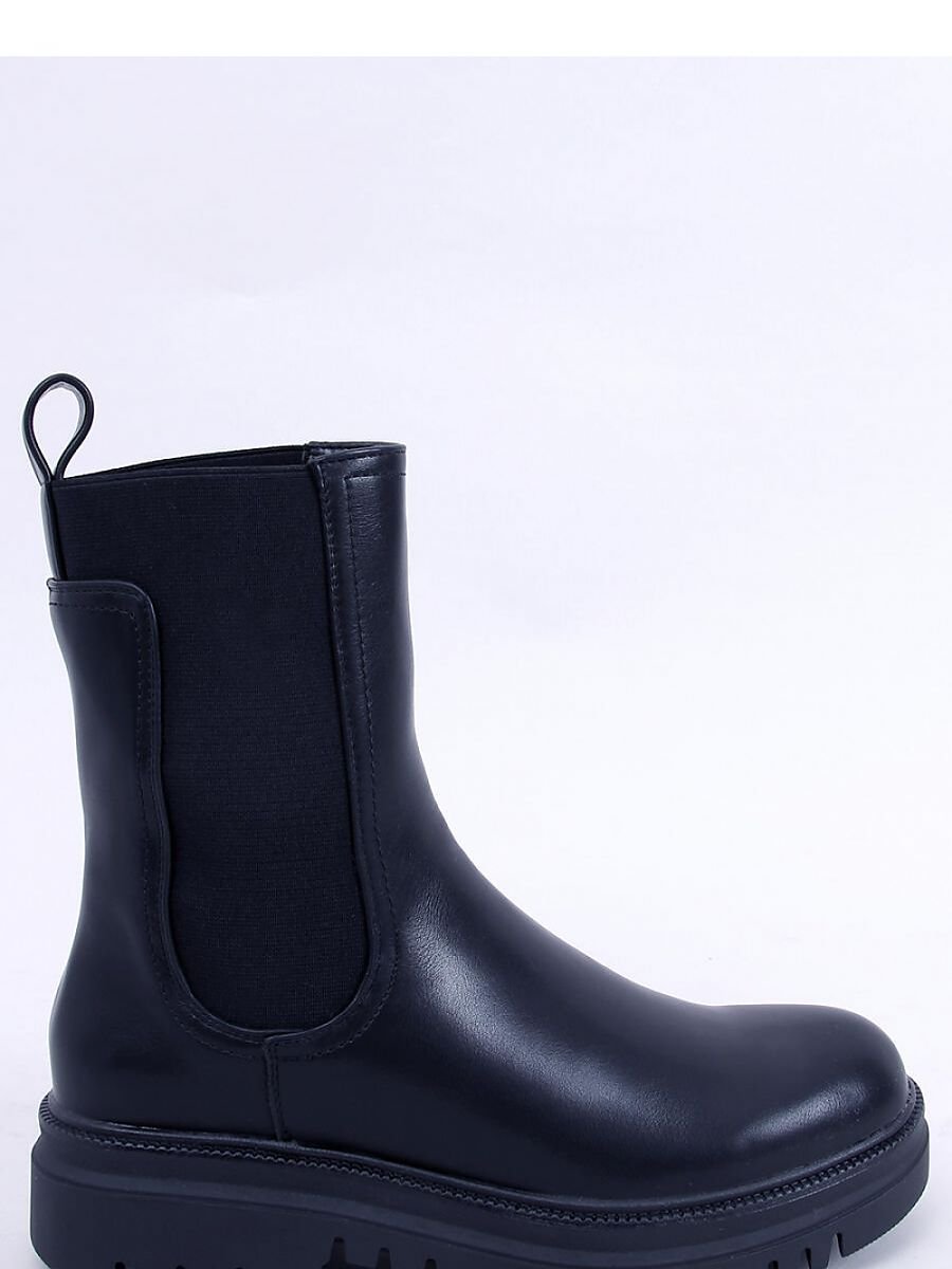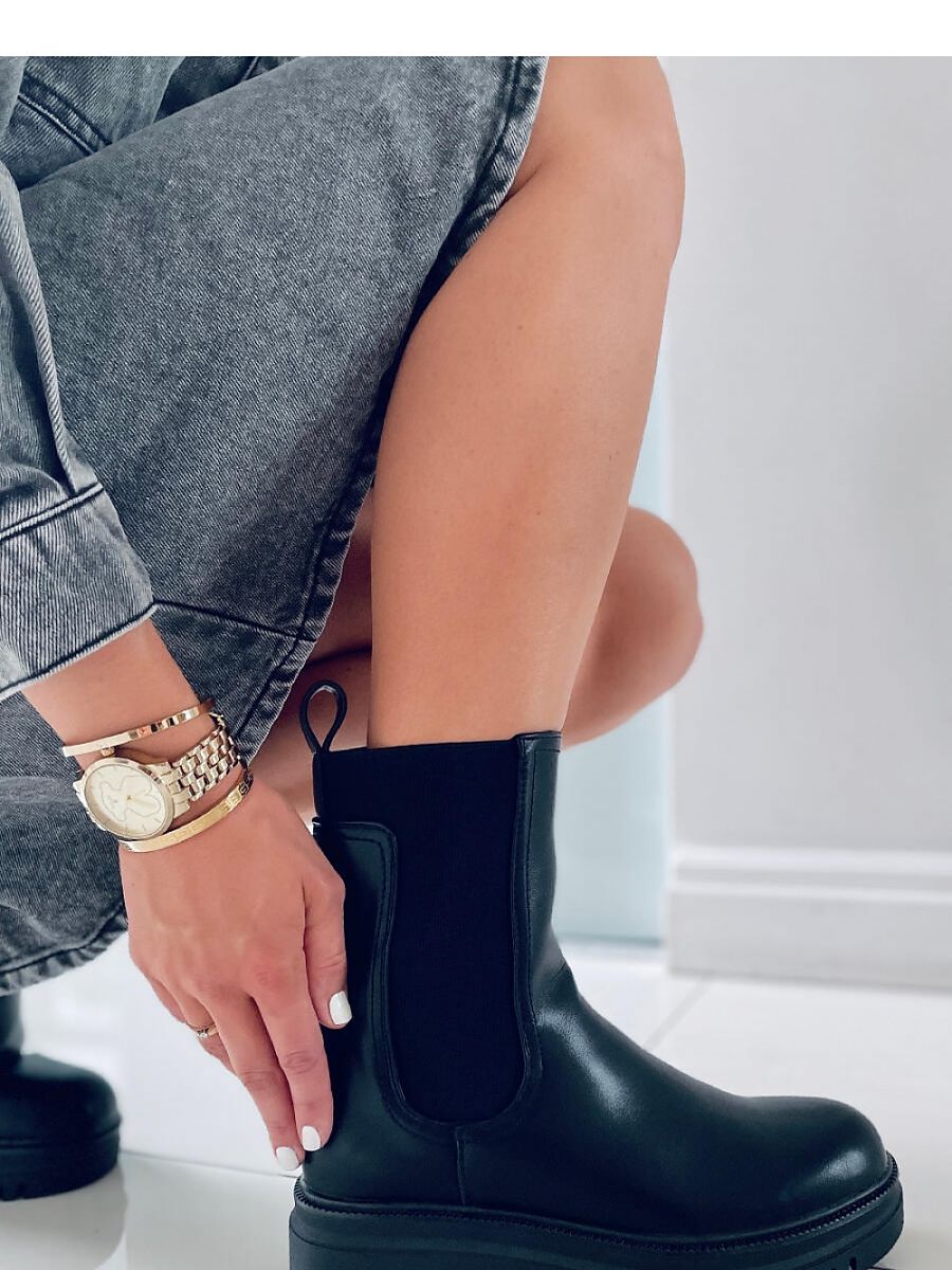 Women's veneer boots - high-top sneakers. This is a timeless model on a thick sole and in a universal black color. The rubber inserts, characteristic of the shoe, ensure quick and effortless putting on. These are perfect everyday shoes - check it out for yourself! They are made of organic leather, on a foam lining.