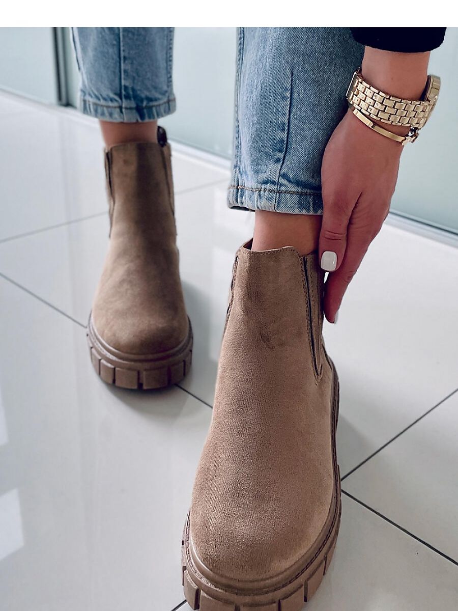 Women's suede boots - slippers on a thick sole. They have a timeless cut with elastic inserts on the sides for easy putting on. The most fashionable high sole is sure to attract glances.... The interior of the shoes is lined with soft fur. Outer material - ecological suede.