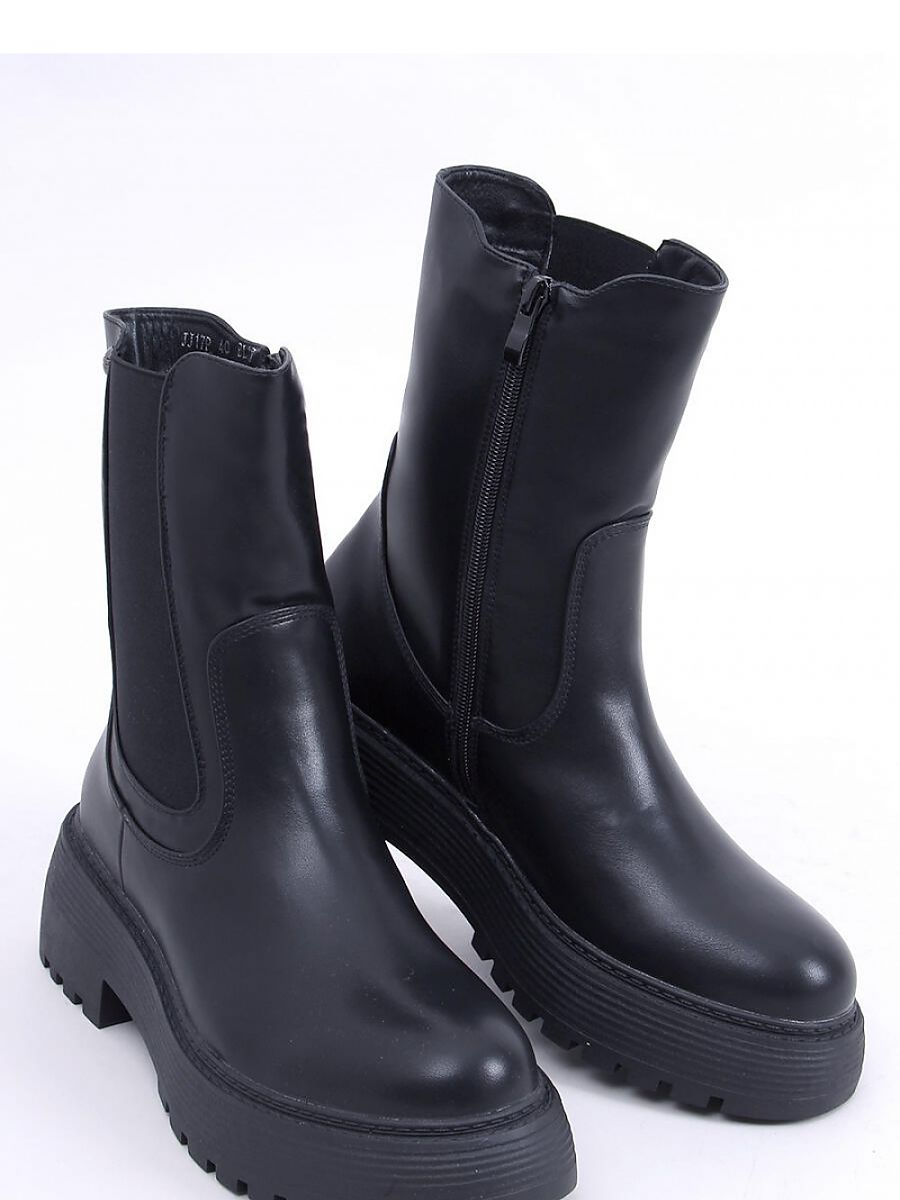 Women's veneer boots - slipper boots on a thick sole. The model is distinguished by a timeless cut with a fashionable high upper. Rubber inset refers to the slippers, and the zipper closure on the side makes it easy to put on. These are the perfect shoes for everyday wear! They are made of organic leather, and the interior is lined with soft fur.