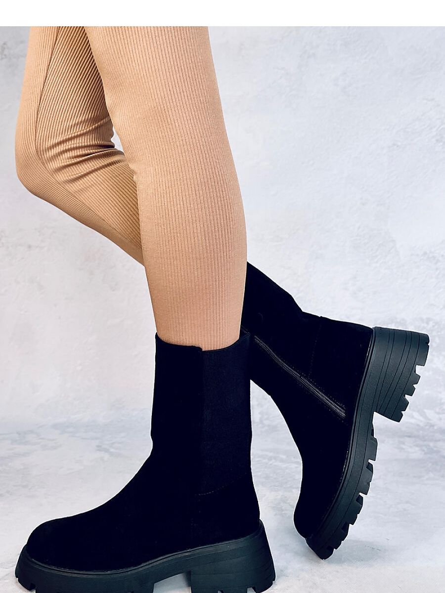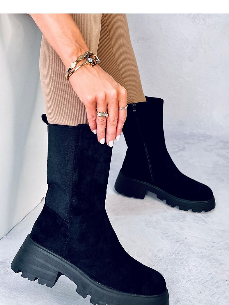 Women's suede boots - high-top sneakers. The model is distinguished by a simple cut on a fashionable high sole. The practical zipper closure ensures quick and effortless putting on, and the elastic insert on the side refers to the sable. They are made of eco-suede, on a foam lining.