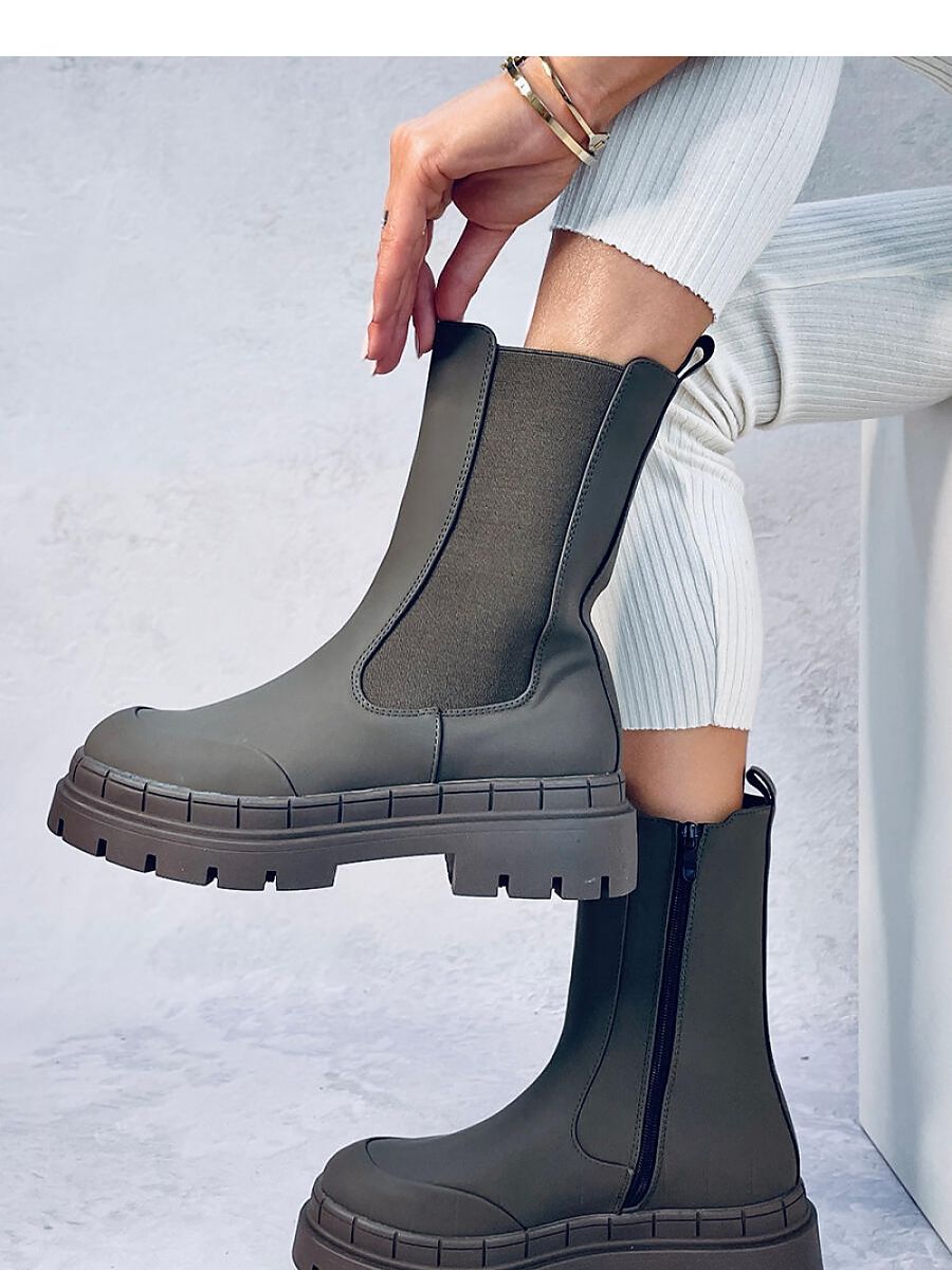 Women's booties - slippers on a solid sole. The model is distinguished by a minimalist cut with a fashionable high upper and in a matte finish. Rubber inset refers to the slippers, and the zipper closure on the side makes it easy to put on. These are the perfect shoes for everyday wear! They are made of organic leather, on a foam lining.