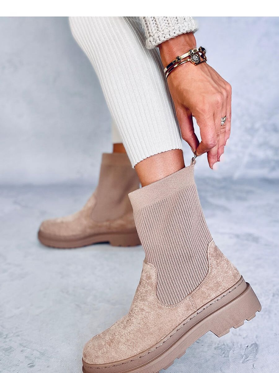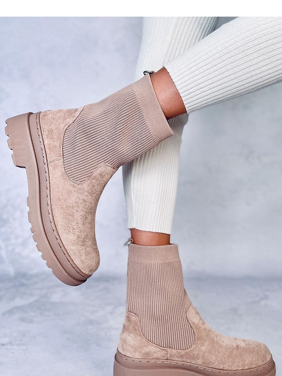 Women's booties - slippers with elastic upper. The model is characterized by a minimalist cut on a fashionable thick sole. Comfortable putting on is provided by an elastic sock upper. These are perfect shoes for everyday wear - check it out for yourself! Outer material - ecological suede.