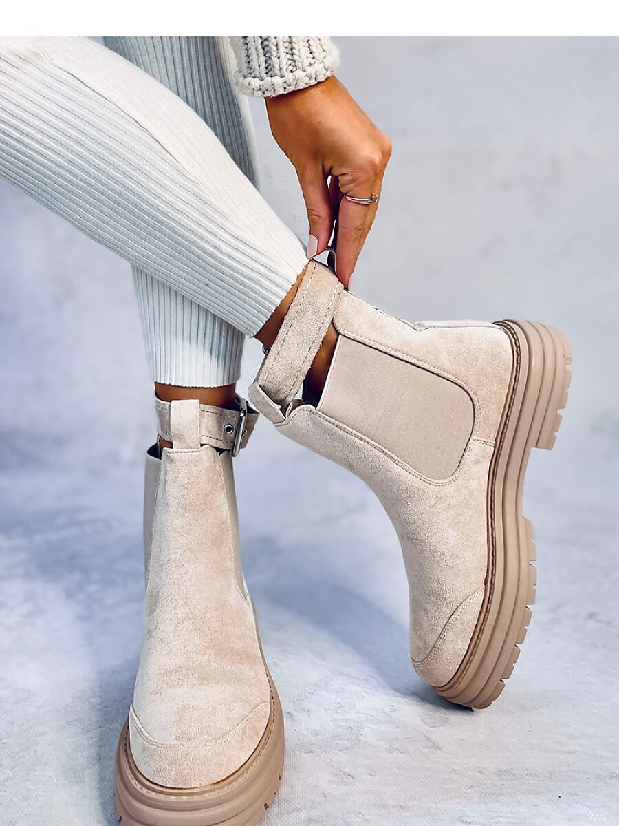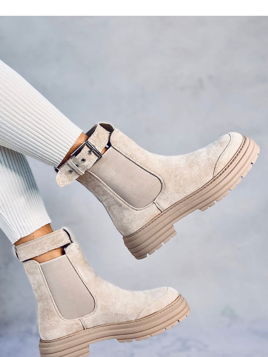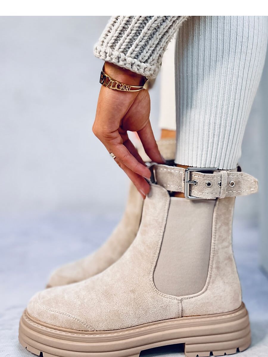 Women's suede boots - slippers on a thick sole. Strap with buckle (detachable) diversifies the design of this model. If you are ready for a bit of craziness, order them today : ) The boots have rubber inserts, which ensure comfortable putting on. The interior of the boots is lined with soft fur. External material - ecological suede.