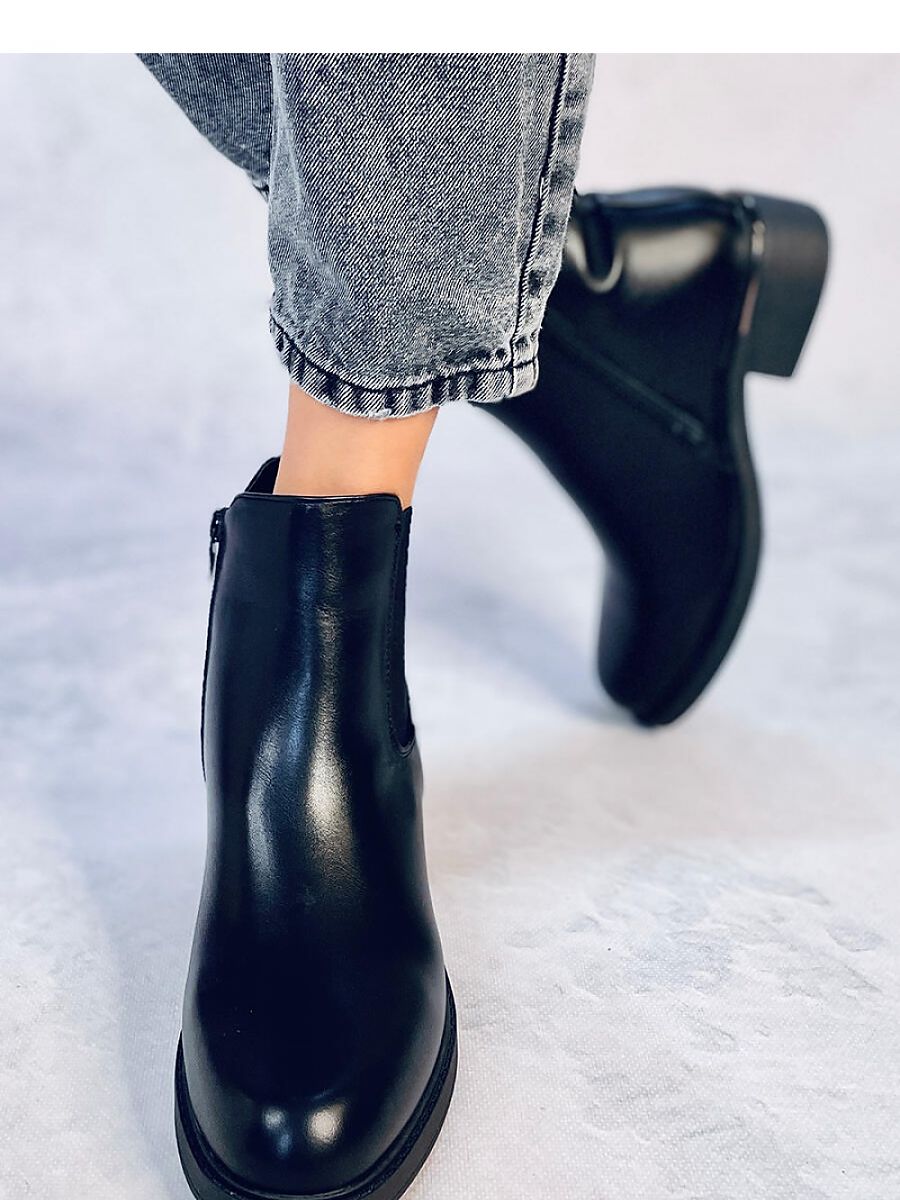 Women's veneer boots - classic slippers. If you are a follower of irreplaceable black then they will surely catch your eye : ) The boots have a rubber insert on the side of the upper and a zipper closure for easy putting on. In addition, they have a soft inner insole - comfort in every step guaranteed! They are made of organic leather, and the interior is lined with soft fur.