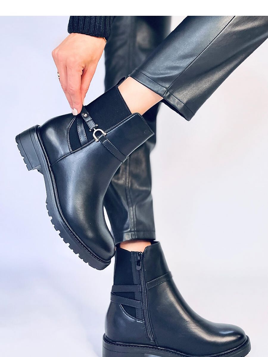 Women's veneer boots - slingbacks with a buckle. If you are a fan of classic cuts, this model is made for you : ) The boots have a rubber insert alluding to the shoelace and a zipper closure for easy putting on. They are made of organic leather, and the interior is lined with soft fur.