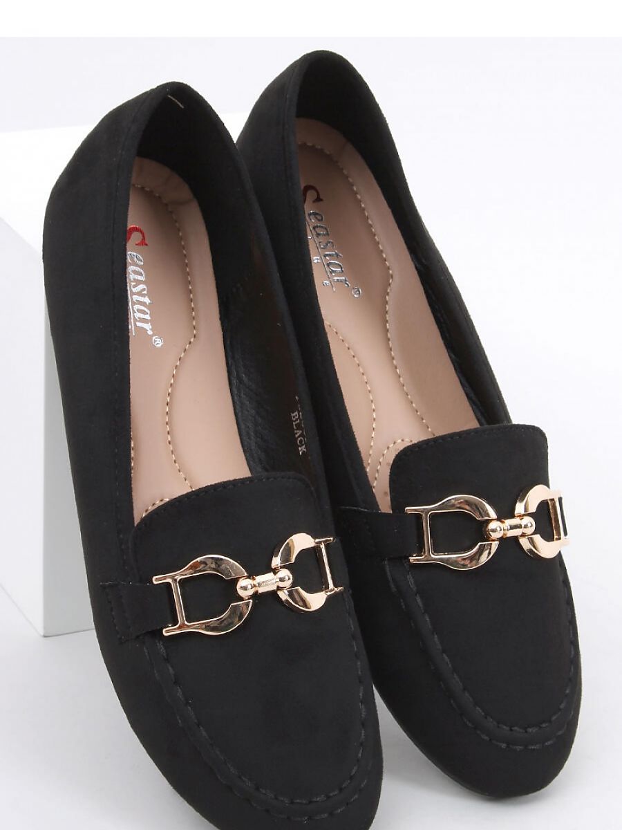 Women's suede moccasins. Combination of classic cut with stylish, gold ornament gives the best effect: ) This unique model has a comfortable, rounded nose and soft inner insole with cushioning - what more could you want? : ) Outer material - ecological suede.