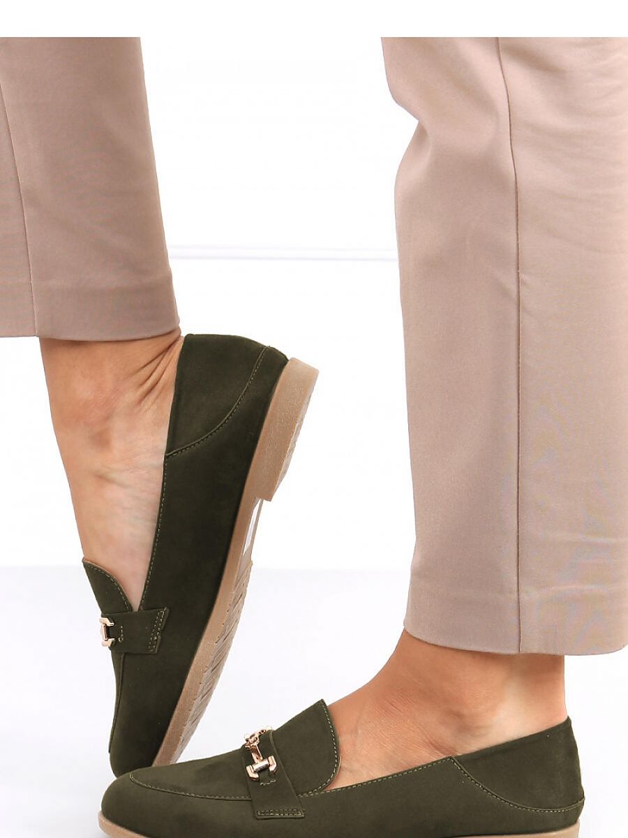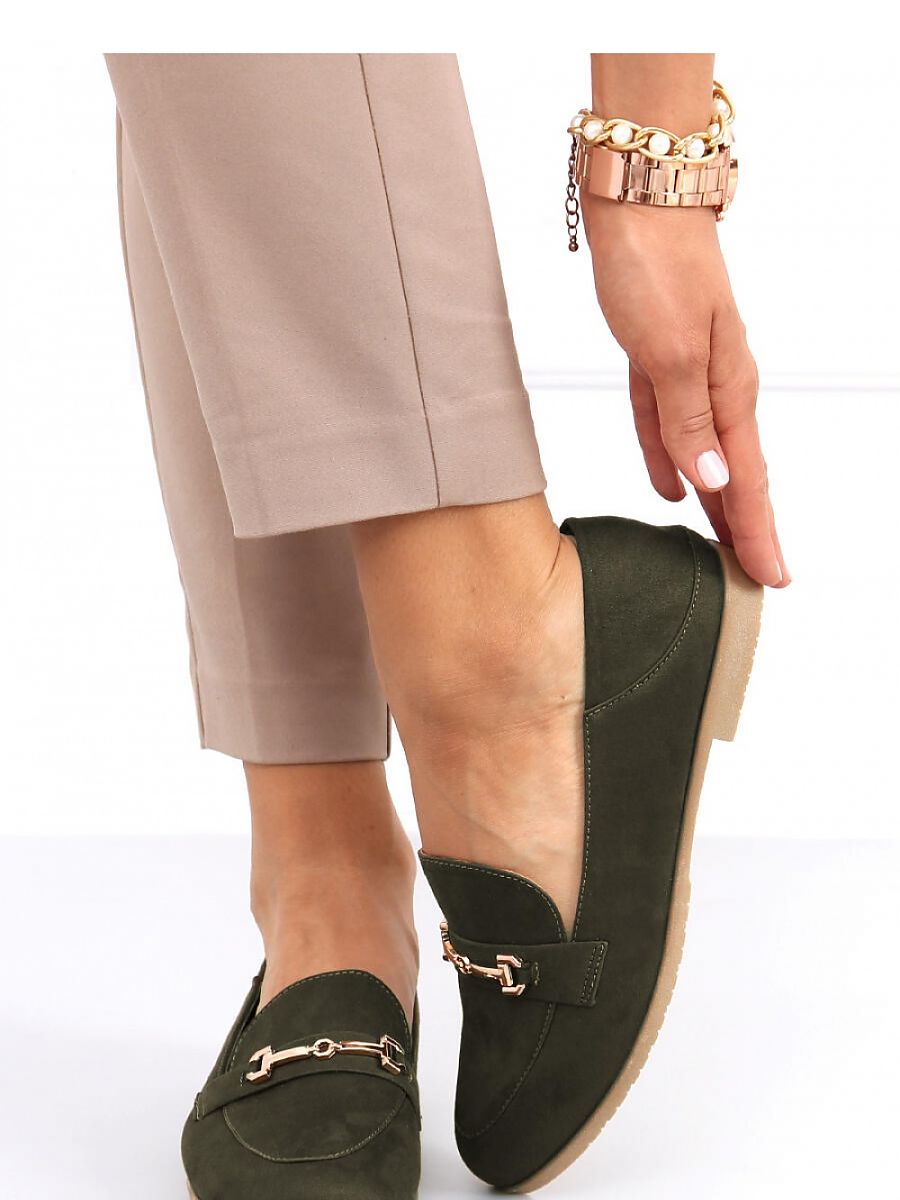 Classic moccasins for women. They have a sleek cut with a tasteful gold embellishment, so they are sure to attract all eyes.... Soft inner insole with cushioning is comfortable for the foot. This is the best choice for women who love elegance and comfort: ) Outer material ? ecological suede (black and green color)/ ecological leather (silver and gold color).