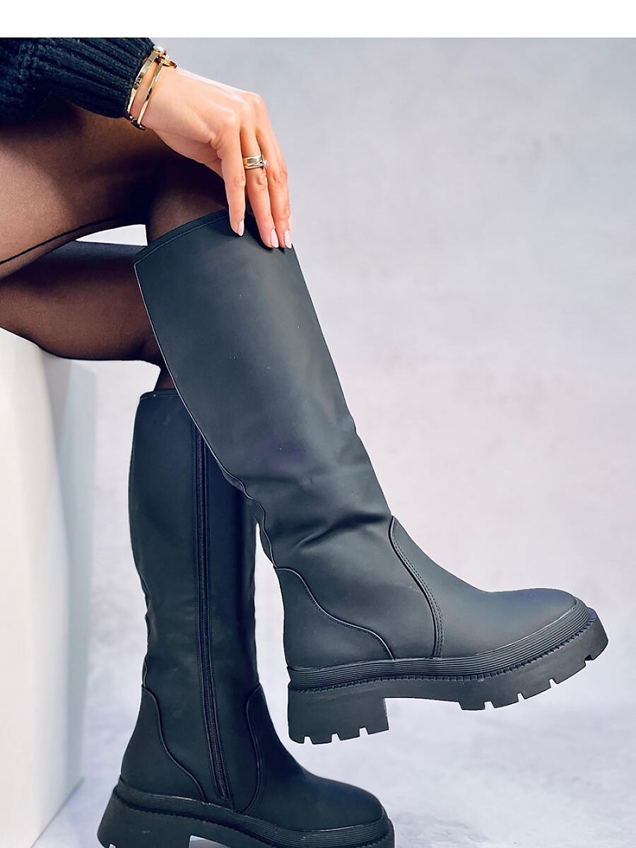 Women's boots on a high sole. Their simple military-style design is highlighted by a matte finish. They are an absolute hit of...