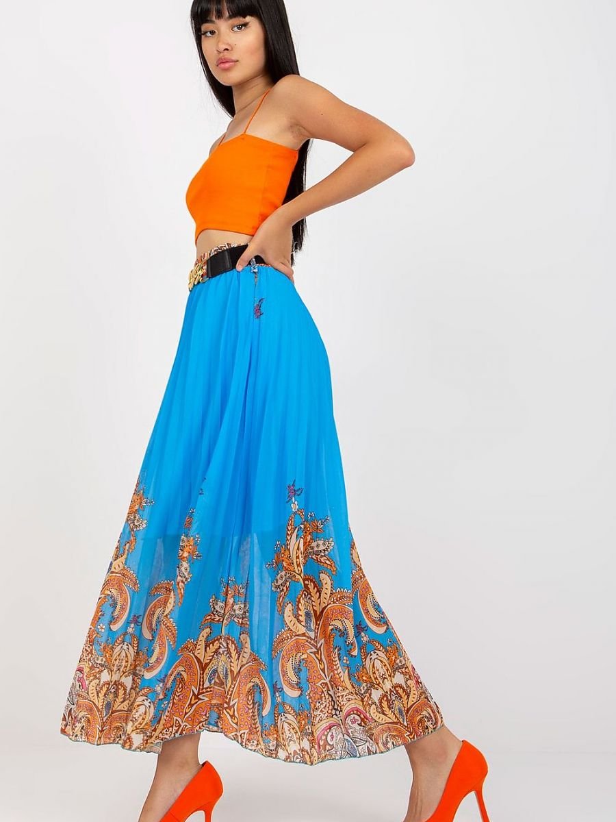Long skirt with elastic waistband, has a lining. Complete with a belt with a decorative chain. Spandex 5 % Polyester 50 %...