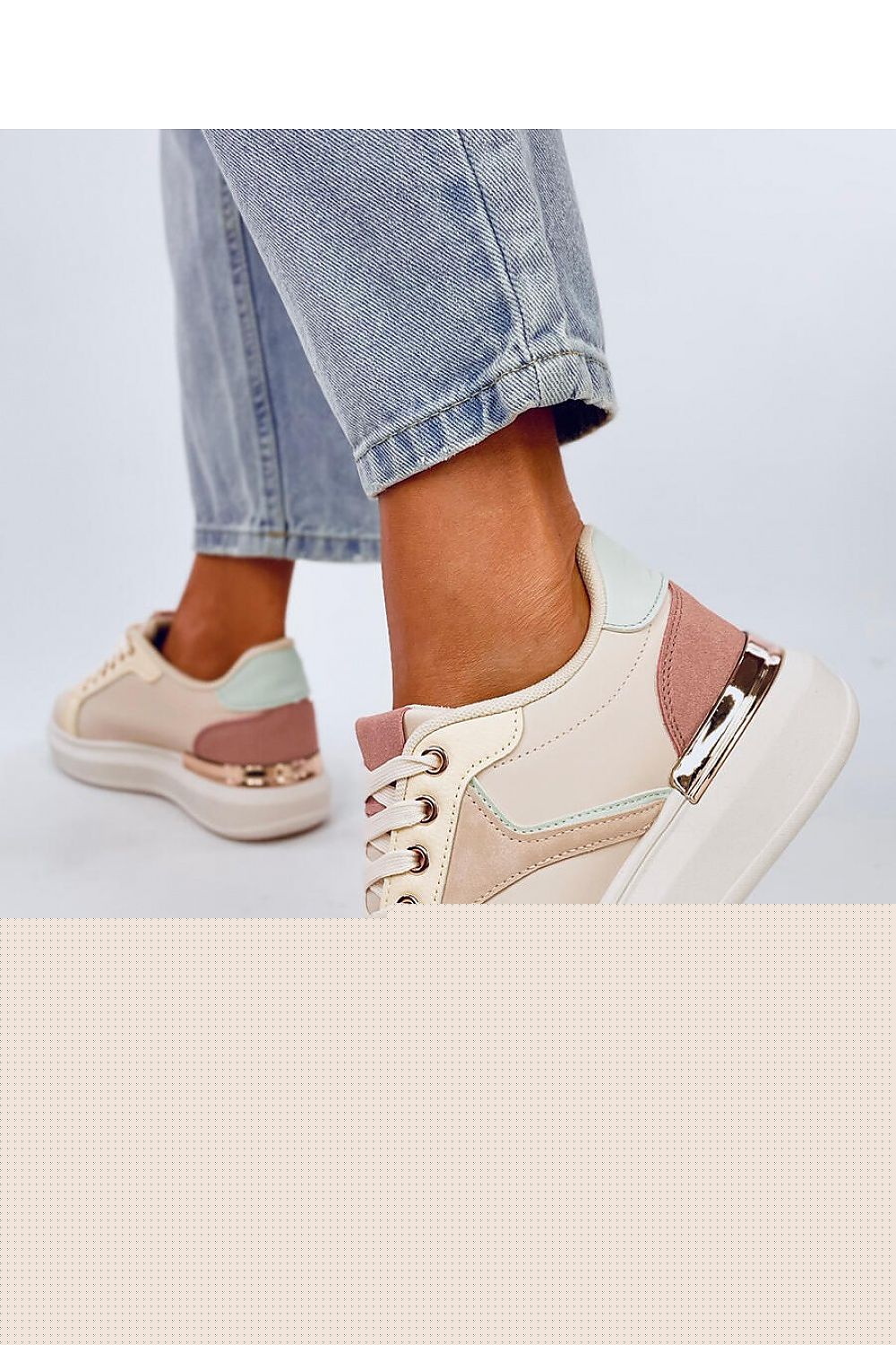 Colorful sports shoes - sneakers for women. They are sure to become your favorite pair of shoes! Beautiful pastel colors add variety to the simple design of this model. See for yourself how special you will look in them.... The interior is lined with fabric. External material ? ecological leather + ecological suede.