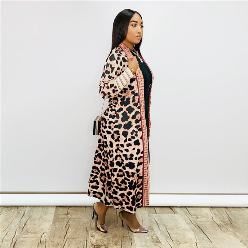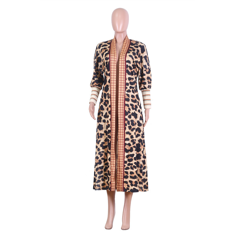 Women Fashion Leopard Print Long Sleeve Cardigan Coat