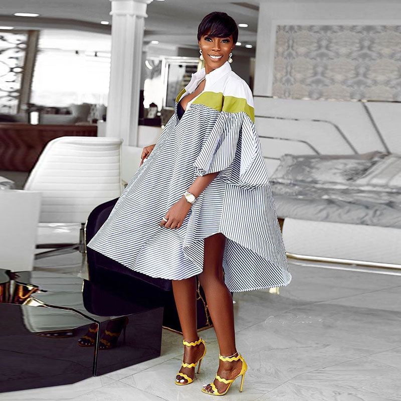 Women Striped Lapel Single-Breasted Irregular Loose Dress