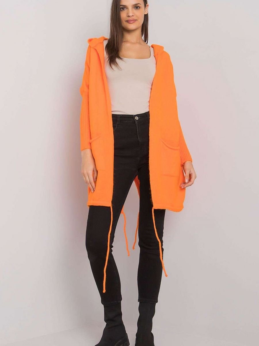 Cardigan with long sleeves, without fastening. Cardigan with hood and ties for tying. Material composition: 75% acrylic, 18% polyester, 7% elite. Size...