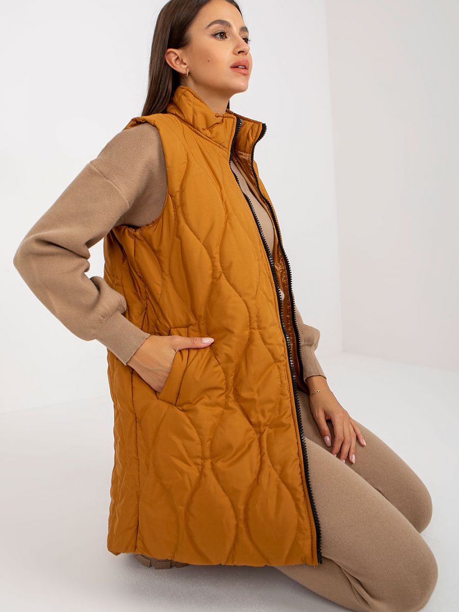 Quilted zippered vest with slip pockets on the sides. The vest is fully lined. Composition: 70% polyester, 30% fiber. Size Chest L...