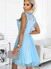 Dress with lace, tulle skirt and gold belt. Dress in blue color. Brand numoco. European production. Spandex 5 % ~Lurex 5 %...