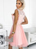 Dress with lace, tulle skirt and gold belt. Dress in peach color. Numoco brand. European production. Spandex 5 % ~Lurex 5 %...