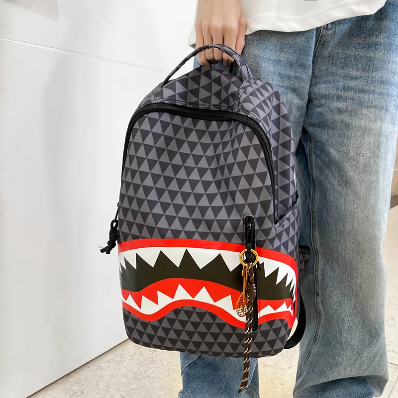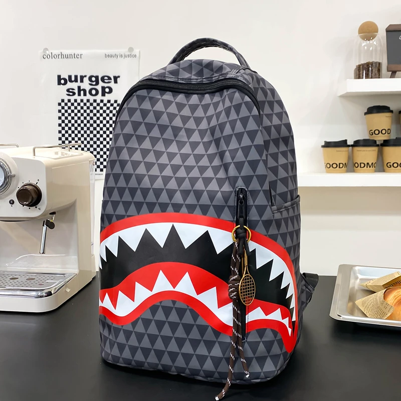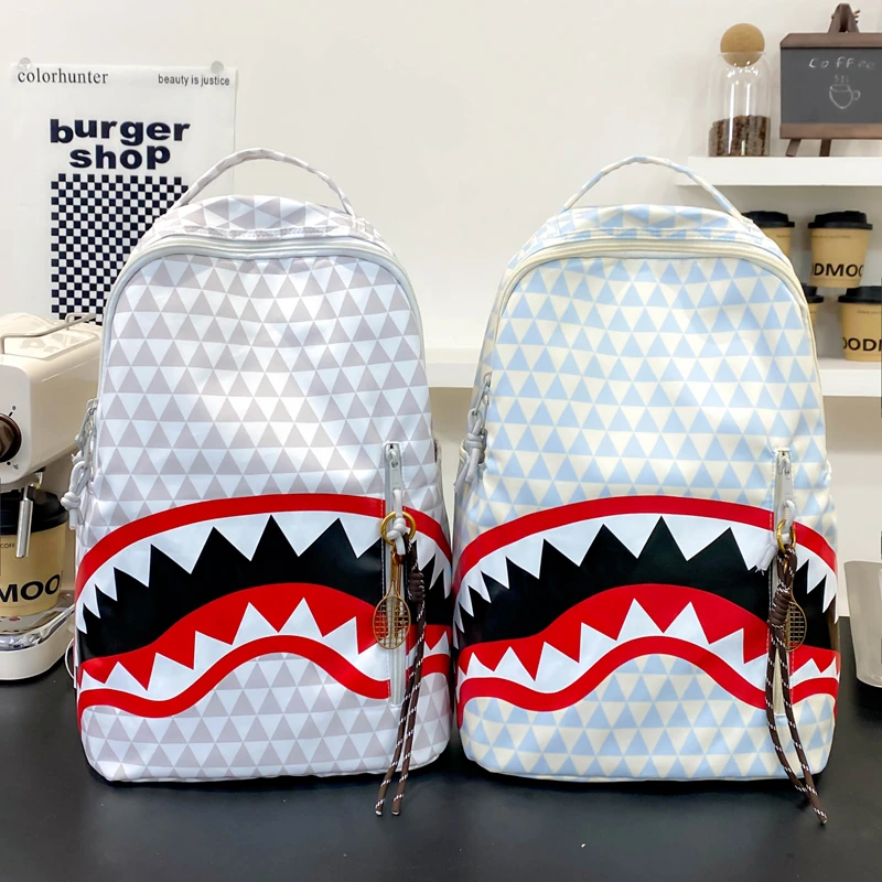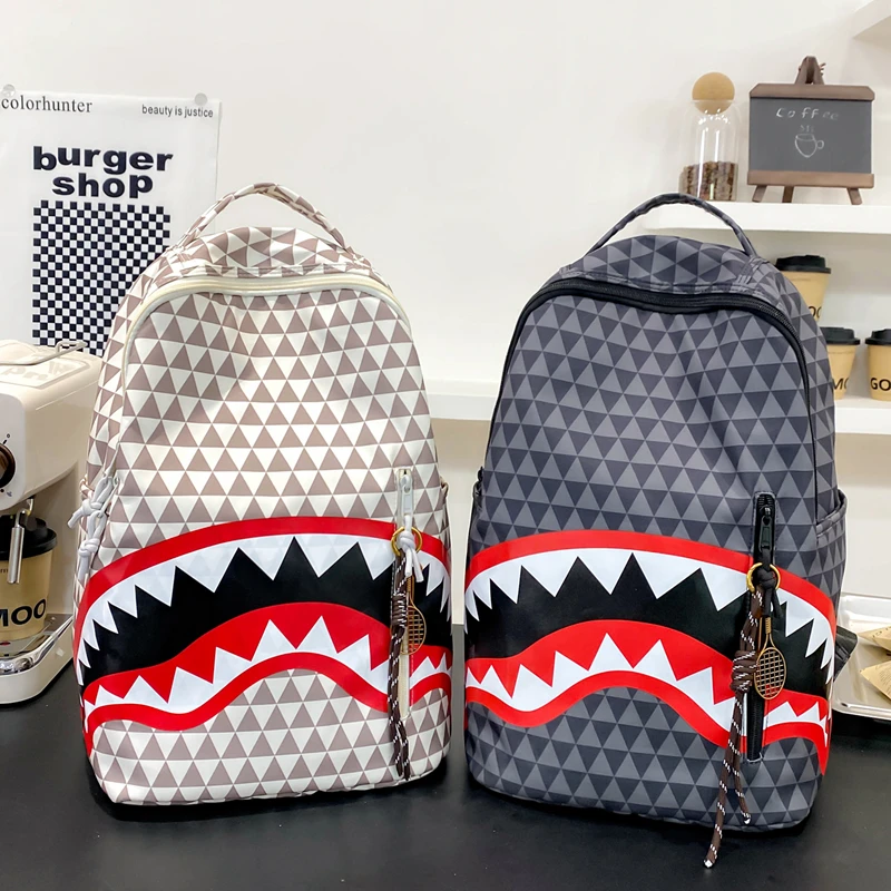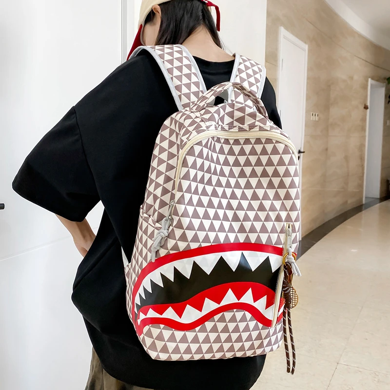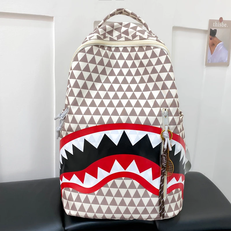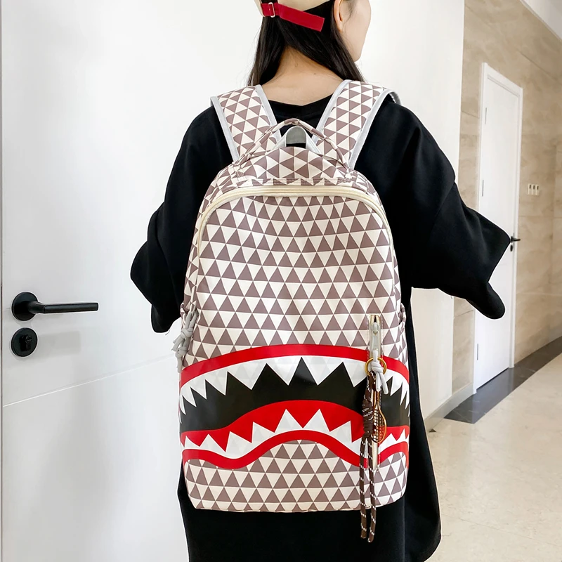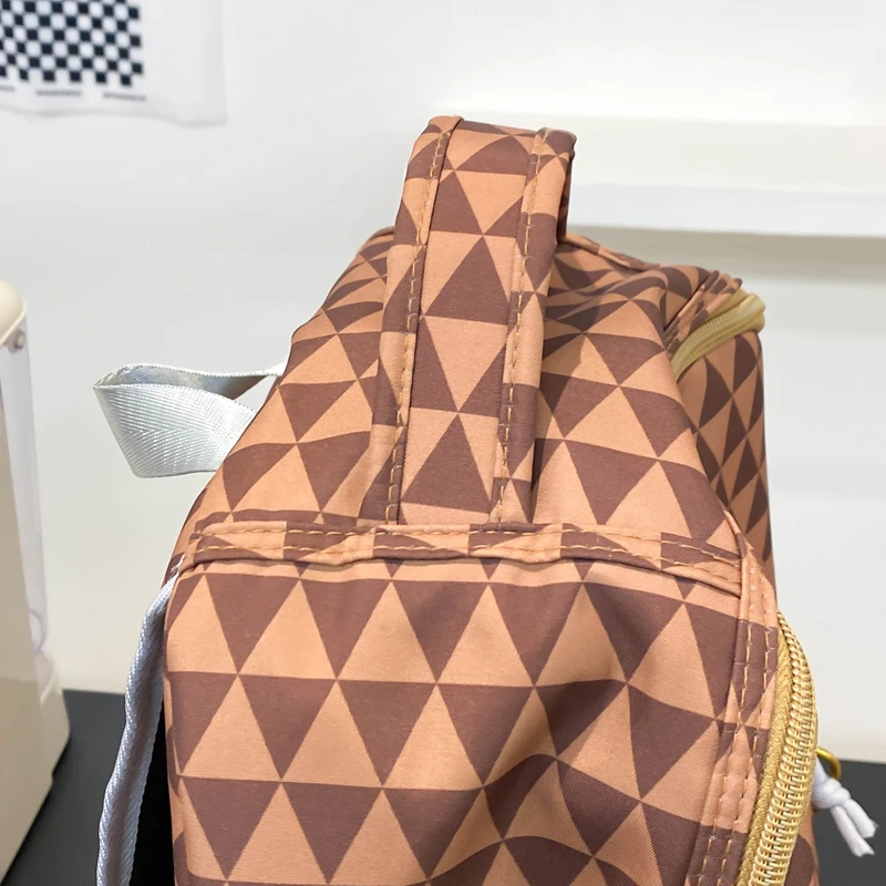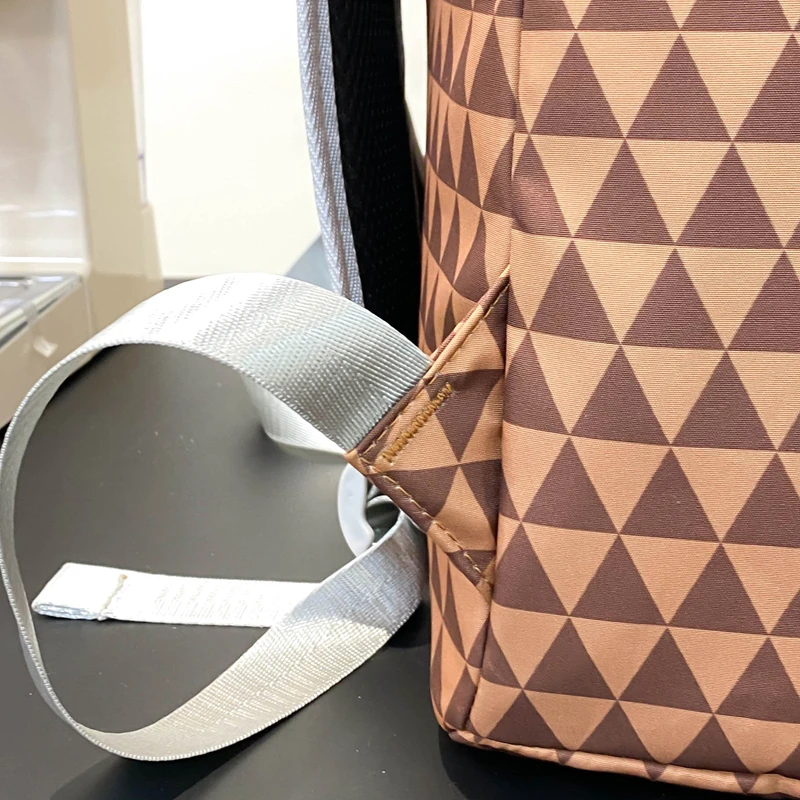 Tiptoegirls Triangle Plaid Backpack Casual College Student Schoolbag Big Mouth Pattern Travel Backpack Individual Nylon Rucksack