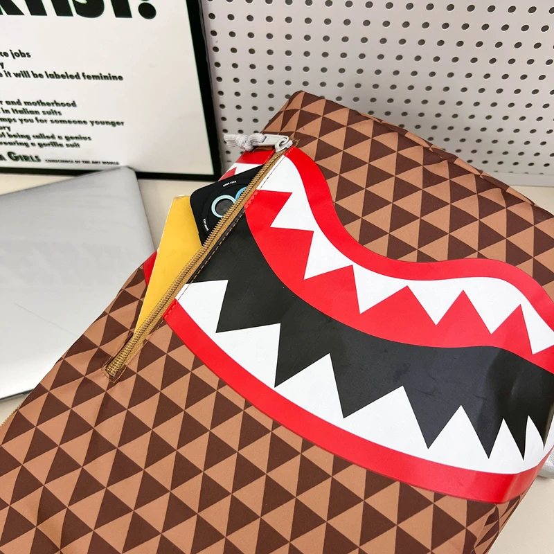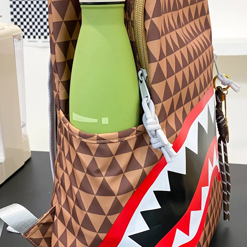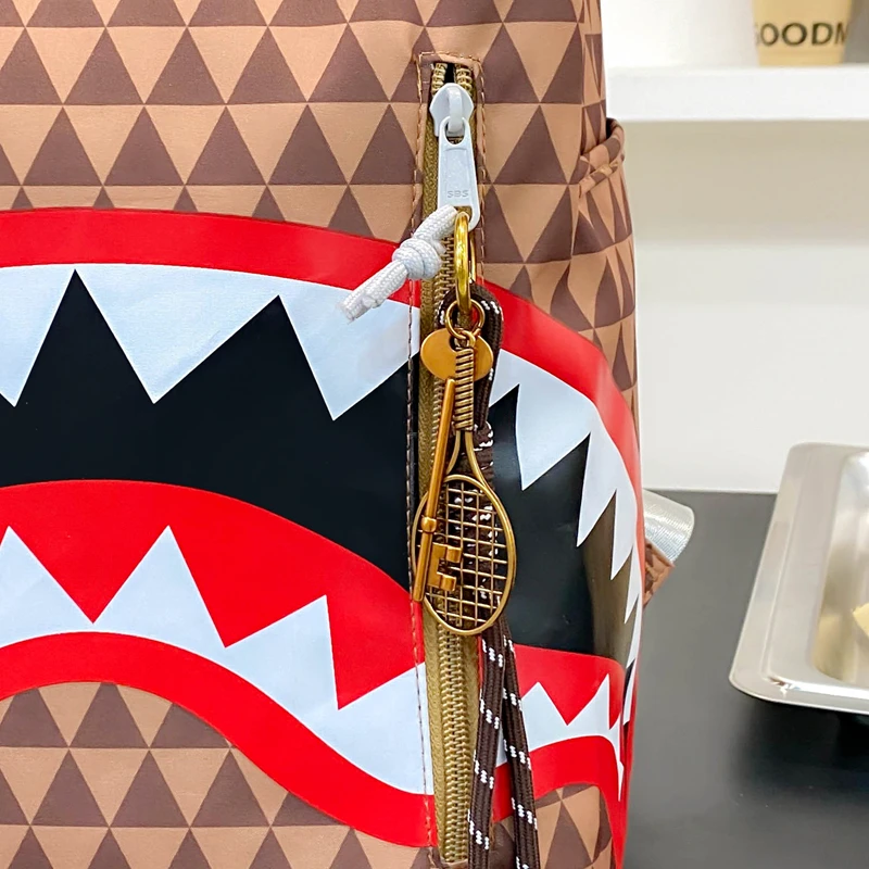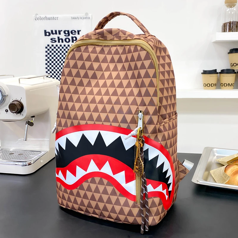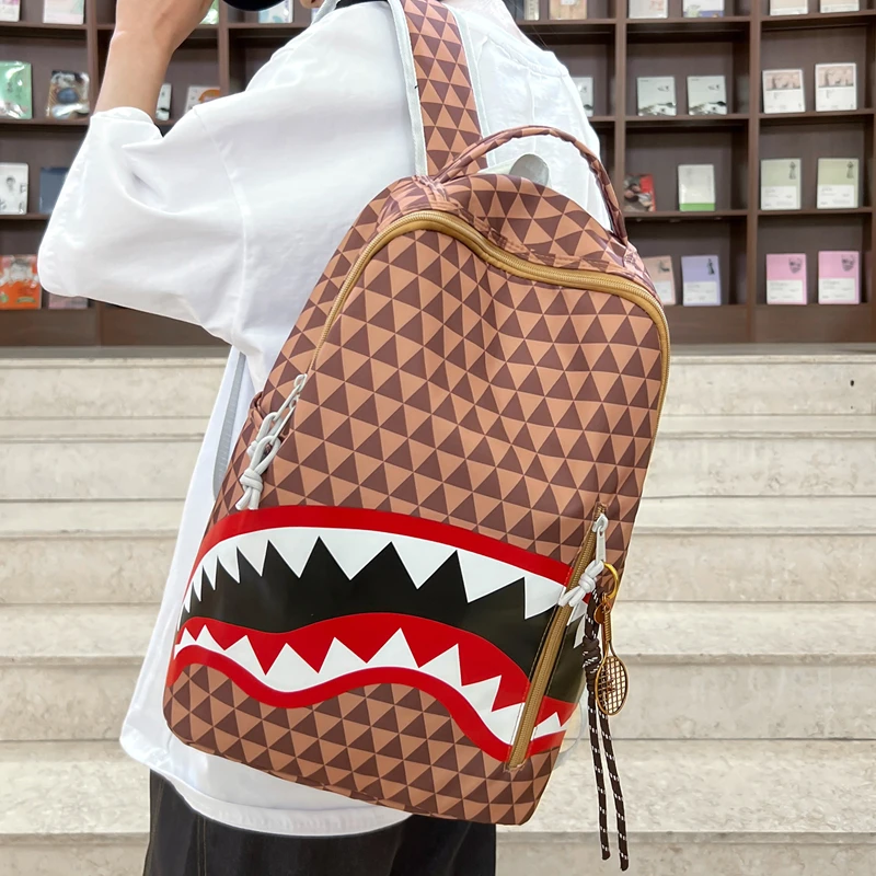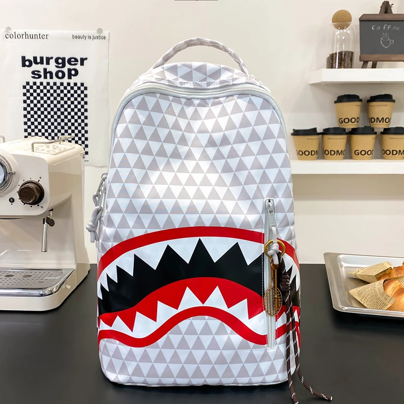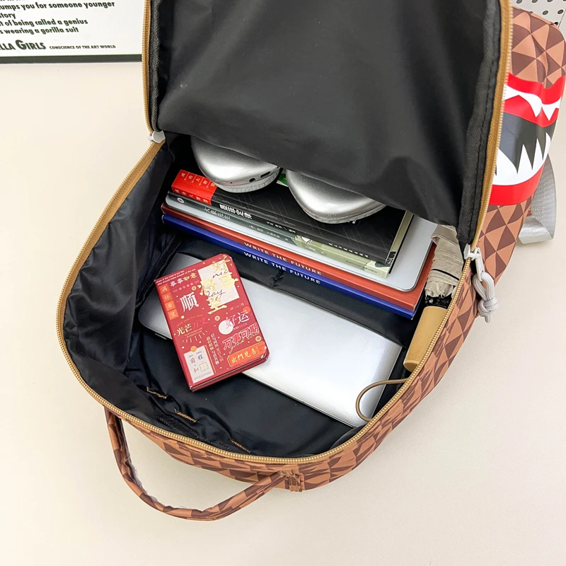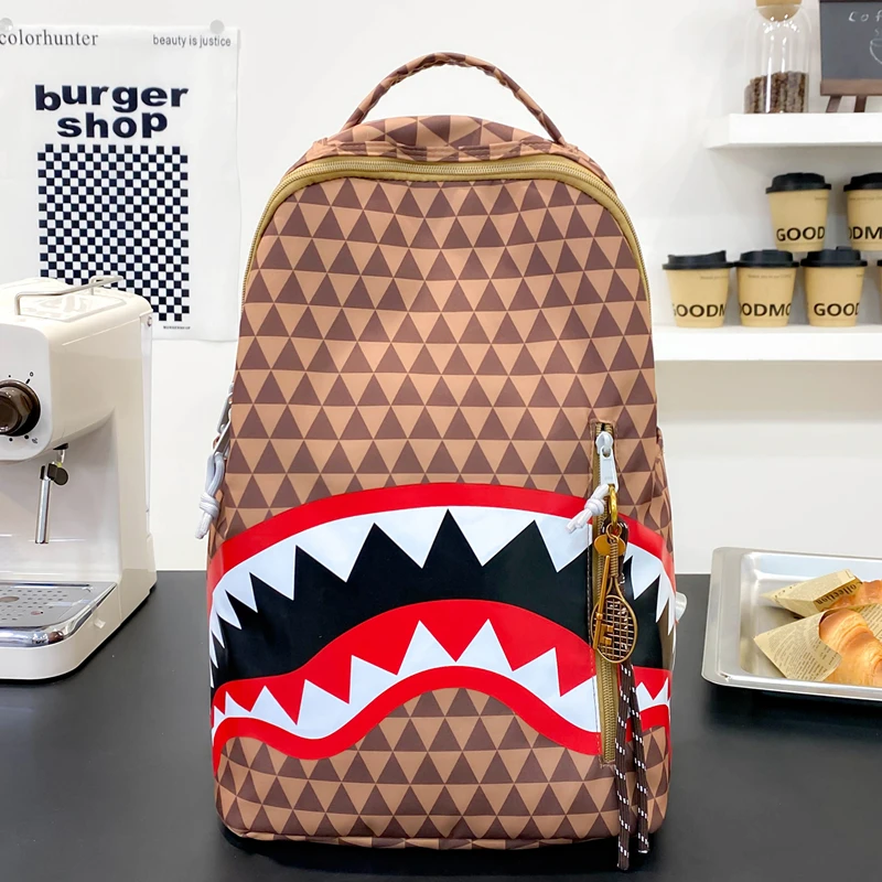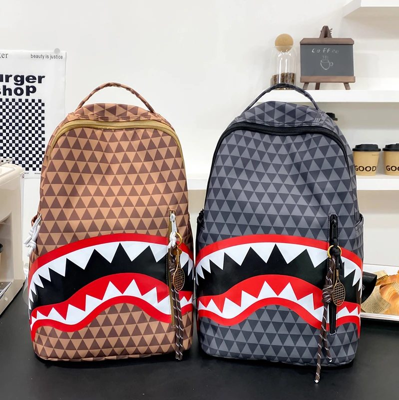 Tiptoegirls Triangle Plaid Backpack Casual College Student Schoolbag Big Mouth Pattern Travel Backpack Individual Nylon Rucksack