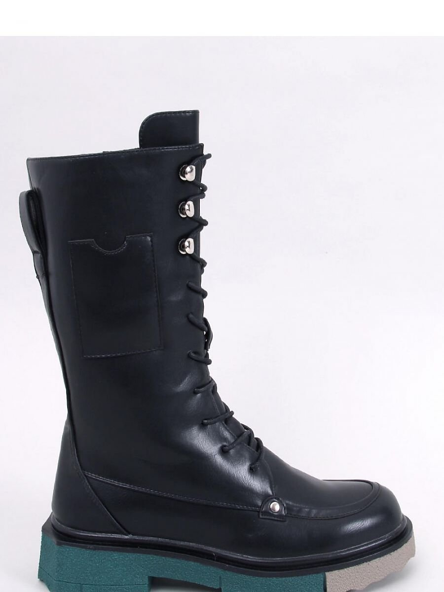 Women's boots - jackboots on a colorful sole. They have a simple cut with a lower upper, which was varied with an overlap. If you are a fan of unconventional combinations then you must have them : ) The comfort of putting them on is provided by a zipper closure on the side of the upper. They are made of organic leather, on a foam lining.