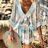 Women Summer Fashion Tie Dye Printing Sequin Stitching V-Neck Chiffon Blouse Cover Up