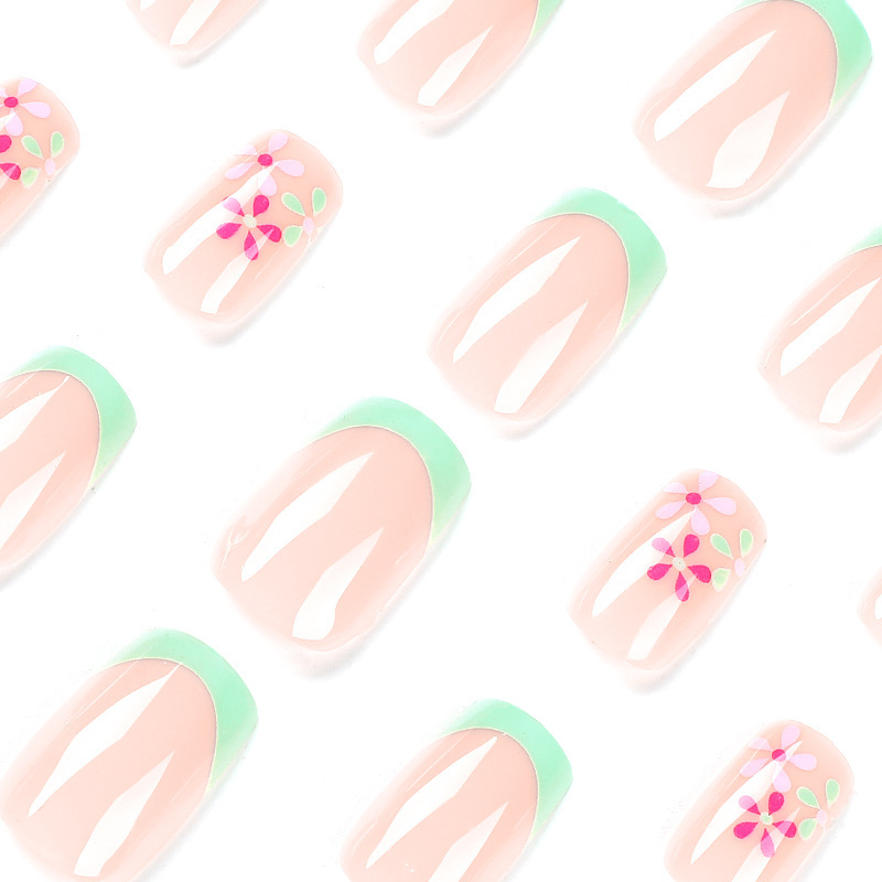 ( Buy 1 Get 2 ) Women Fashion Green Pink Floral Detachable False Nails