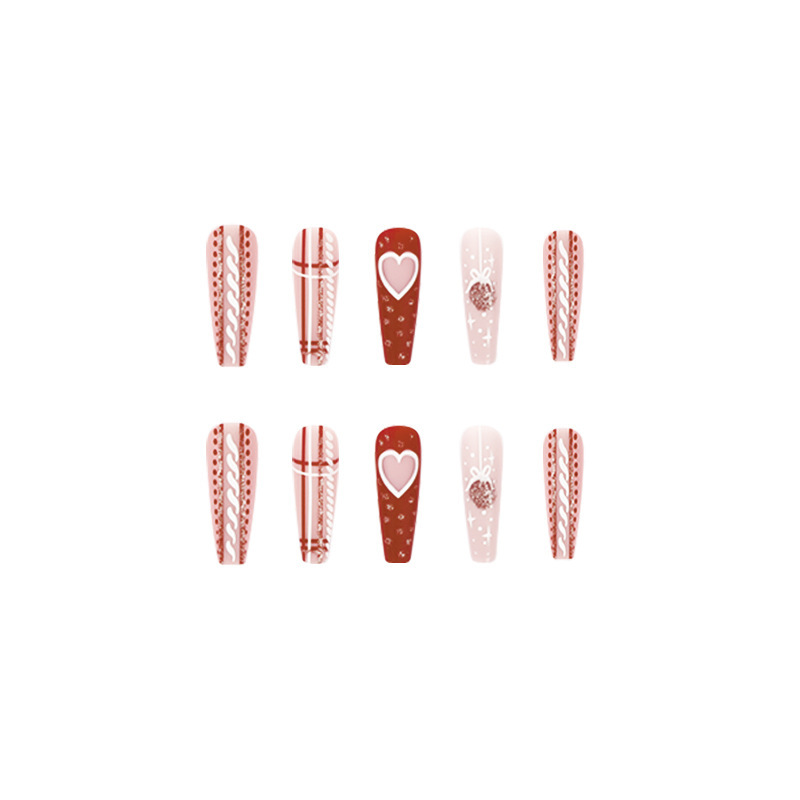 ( Buy 1 Get 2 ) Women Fashion Christmas Love Glitter Powder Long Matte Detachable False Nails