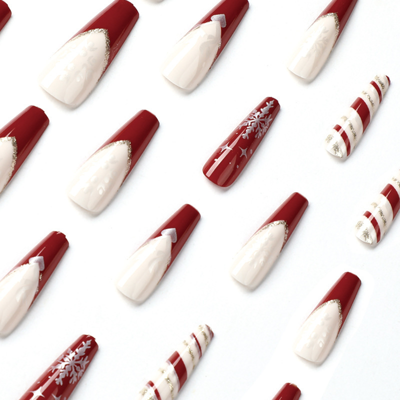 ( Buy 1 Get 2 ) Women Fashion Christmas Stripe Heart Stripe Wearable False Nails