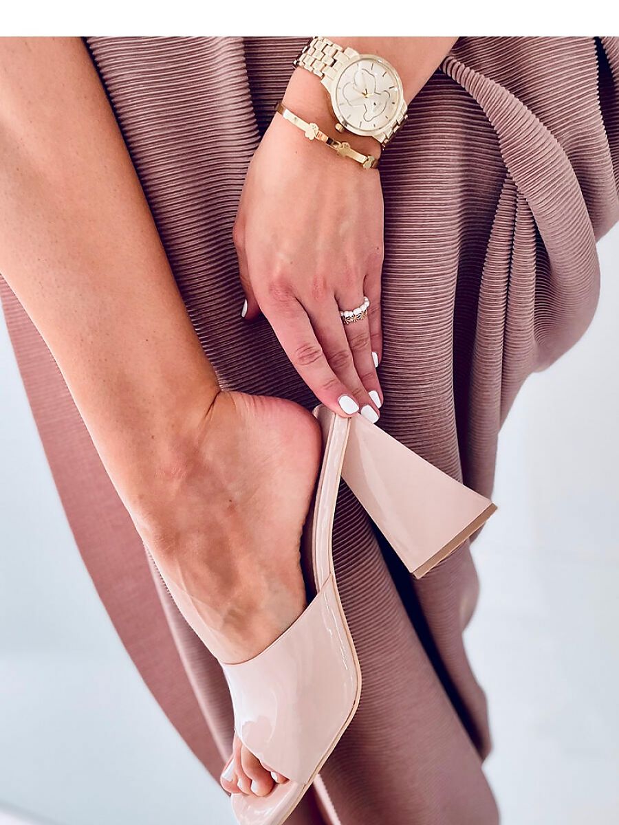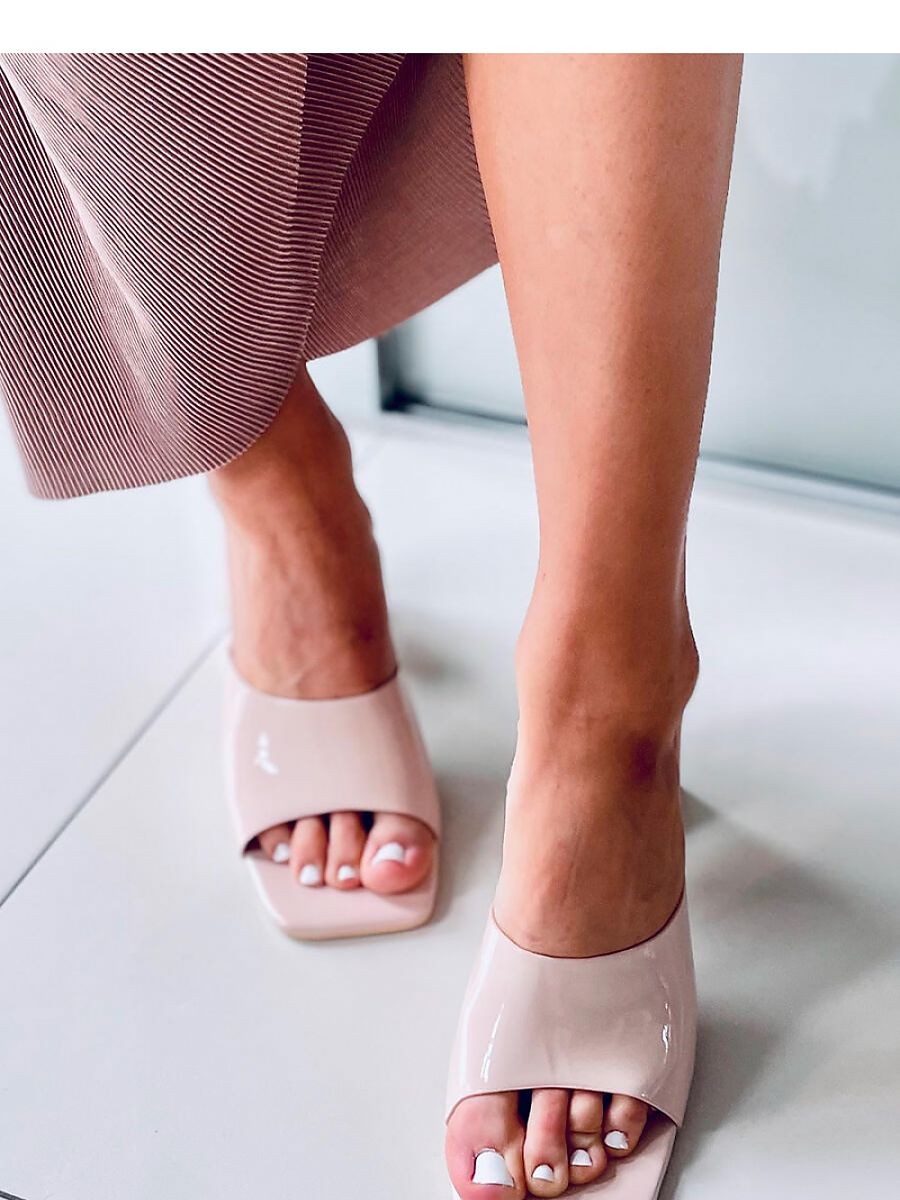 Women's flip-flops on a 11cm heel. Extravagant lacquered finish, designer heel and trendy square sole - we love this combination! You can be sure that you won't be able to pass unnoticed: ) Outer material - ecological patent leather.