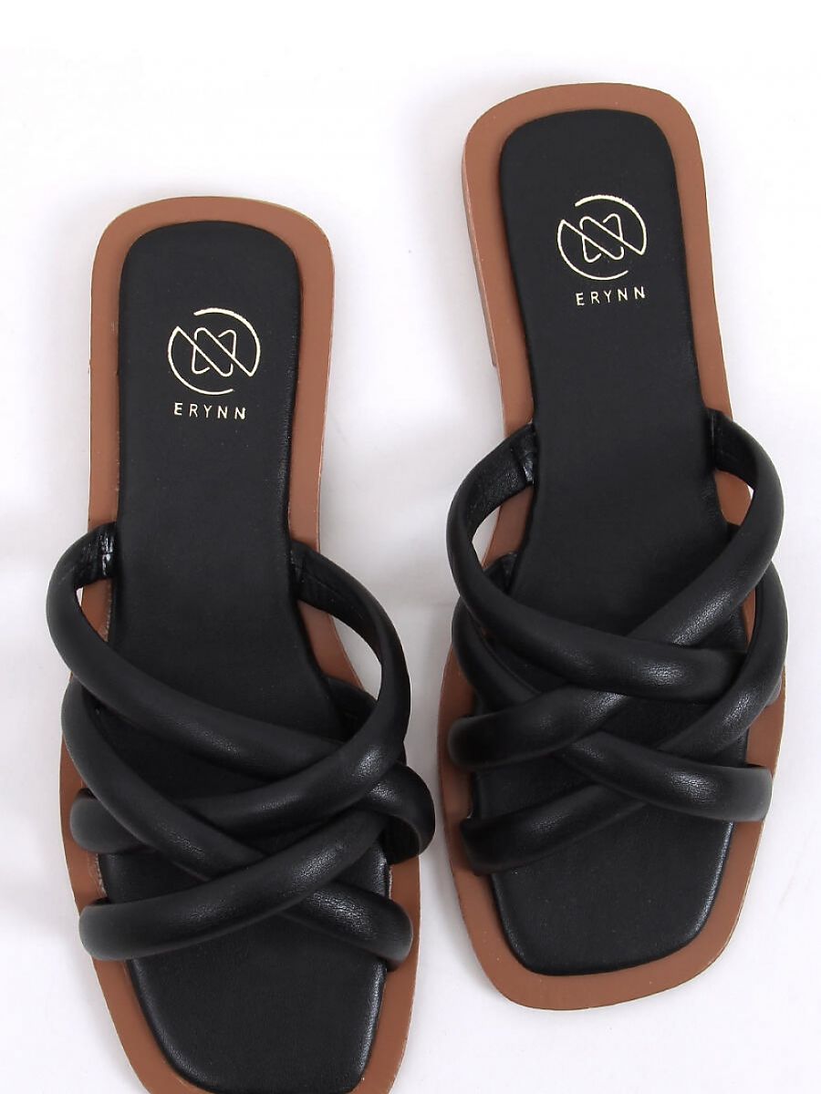Black women's flip-flops on a flat sole. The model has the most fashionable square cut with braided straps that beautifully emphasize the foot. These flip-flops are fashionable, comfortable and practical: ) External material ? ecological leather.