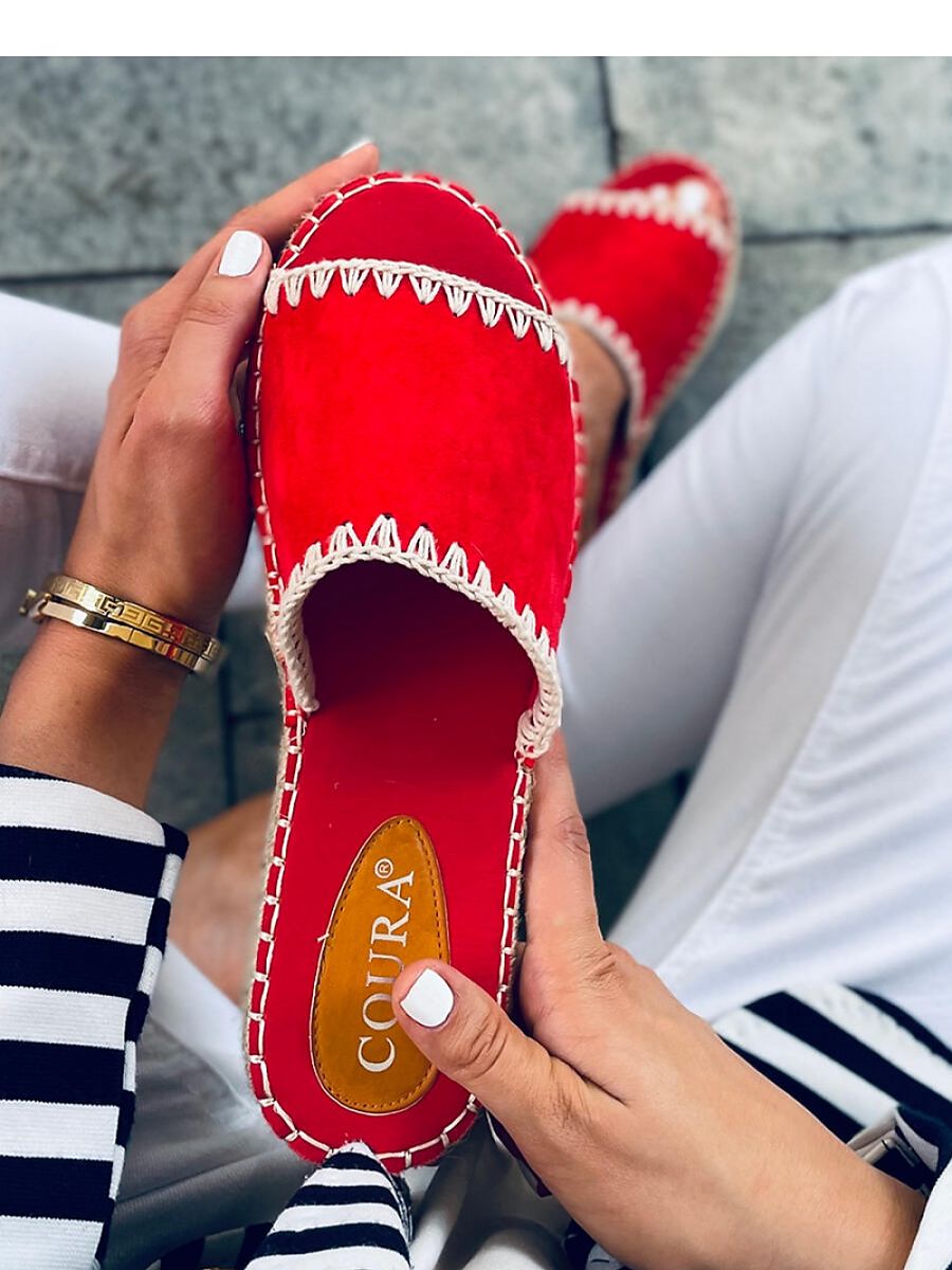 Women's flip-flops on a braided linen cord sole. For many seasons they have been a real hit : ) Espadrilles are a combination of comfort and unique summer style.... They are the perfect shoes for summer! Outer material - ecological suede, inner insole - fabric.