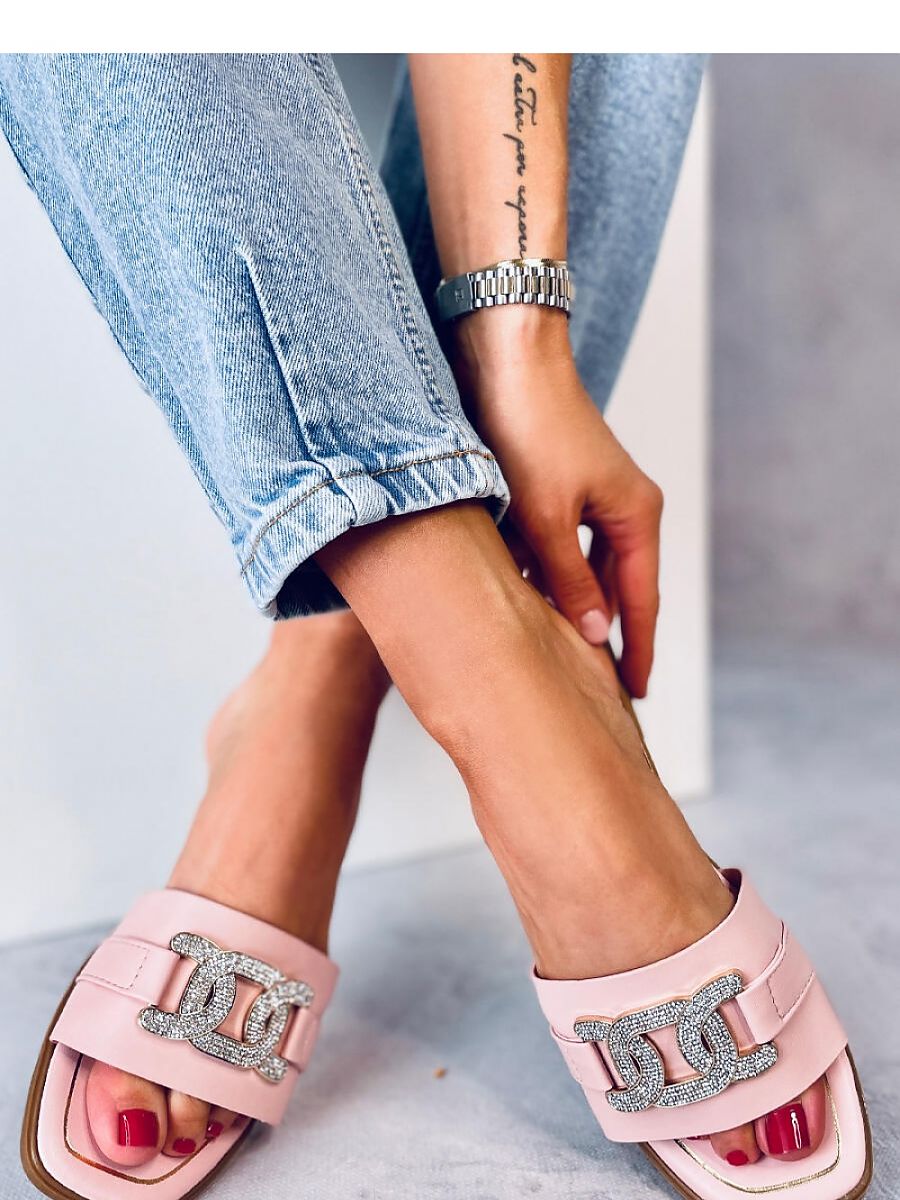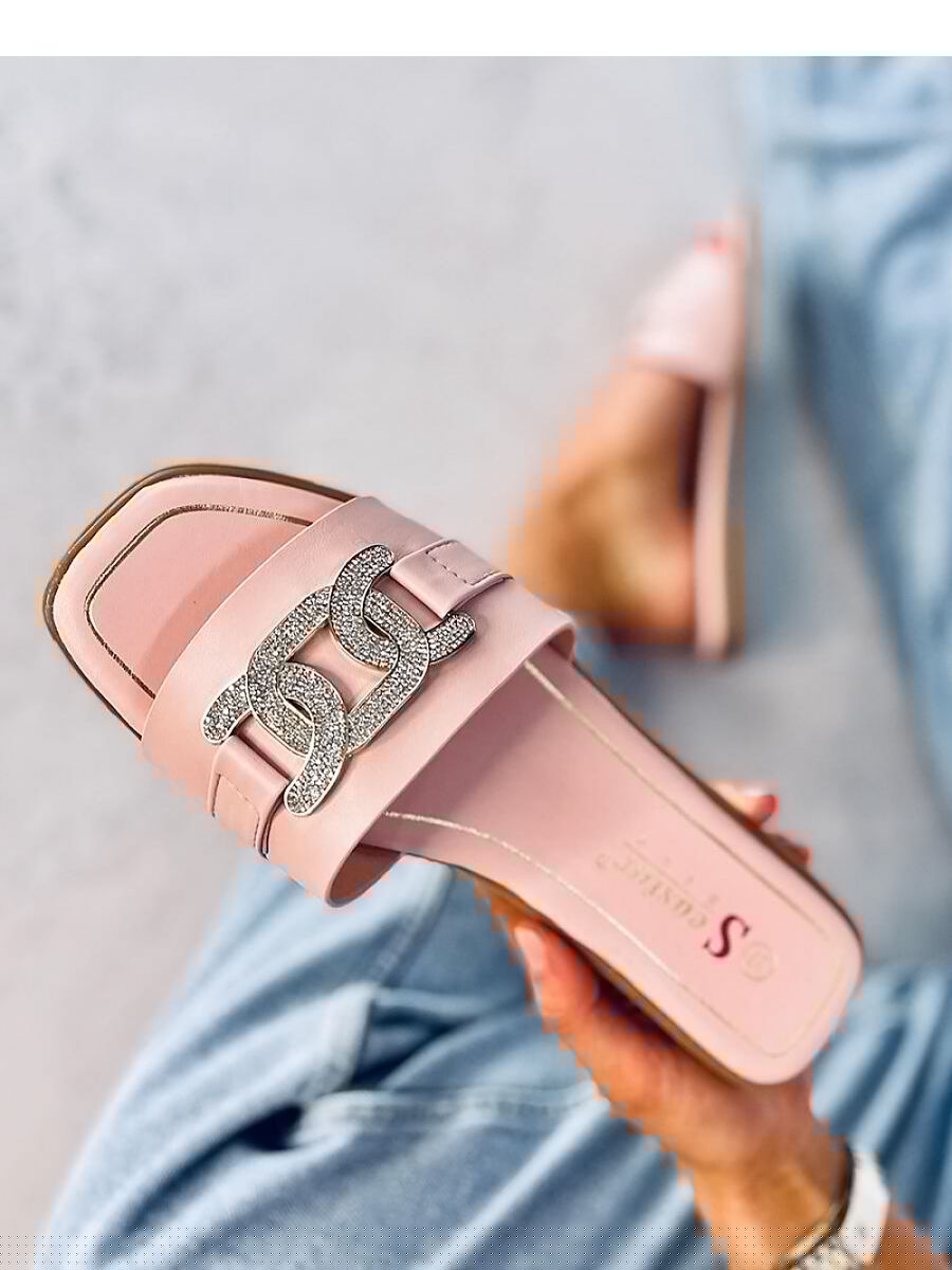 Stylish women's flip-flops on a flat sole. This unique model features the most fashionable square cut with a shiny zirconia application.... If you want to feel feminine and stylish in summer, these shoes are made for you : ) Outer material ? ecological leather.