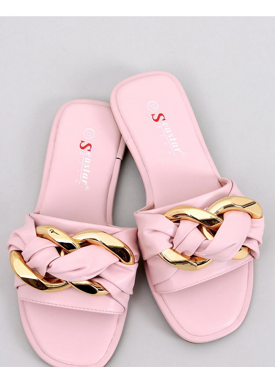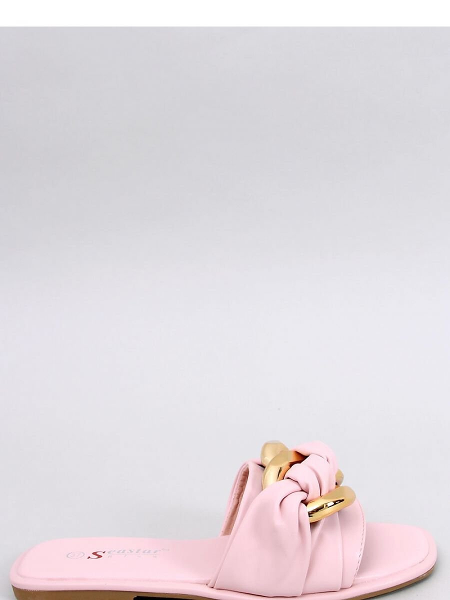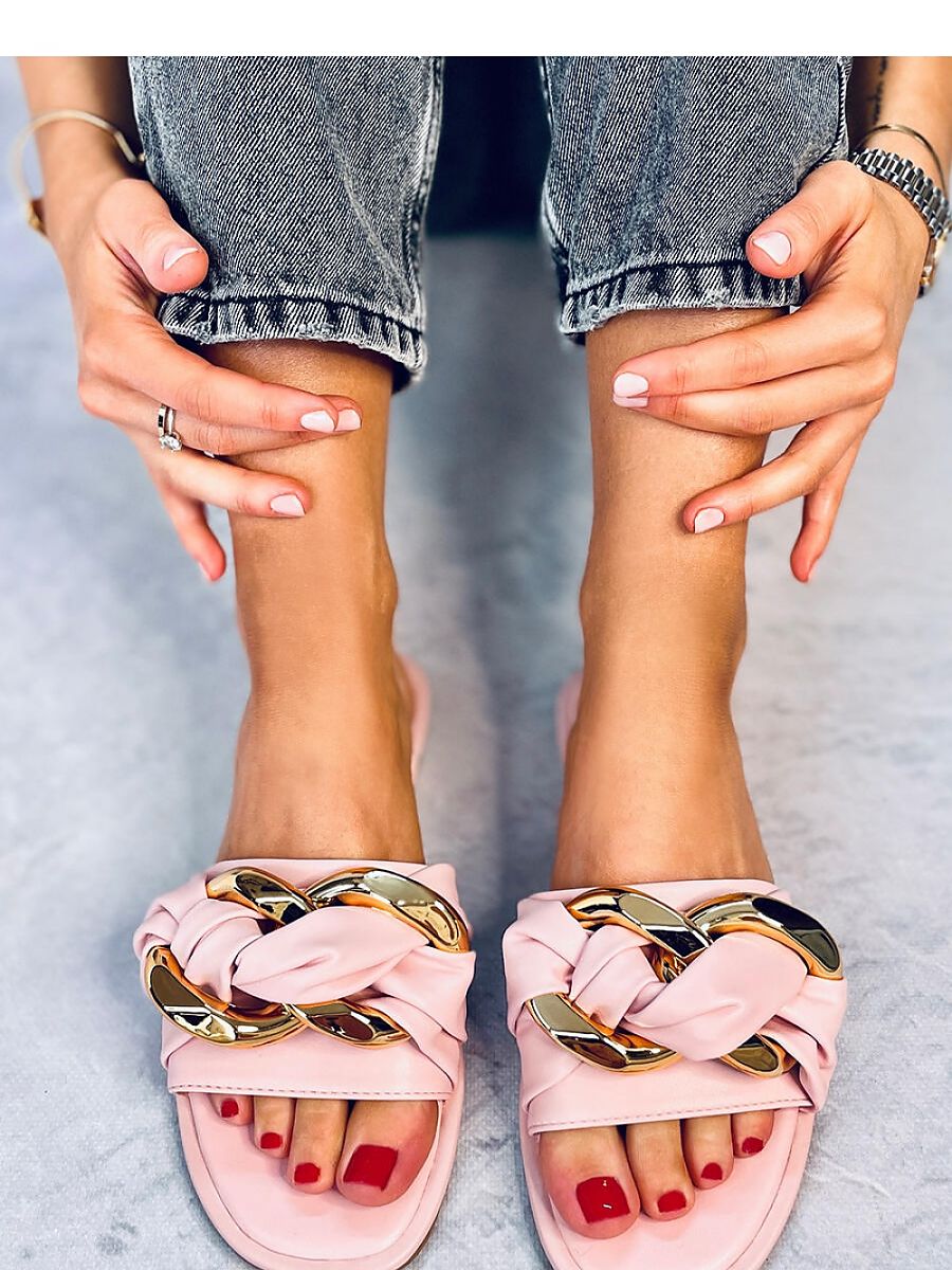 Women's flip-flops on a flat sole. The model is distinguished by the most fashionable, stylish chain on the front.... In these shoes you will feel fashionable, feminine and extremely comfortable.... They will certainly meet your expectations : ) Outer material ? ecological leather.