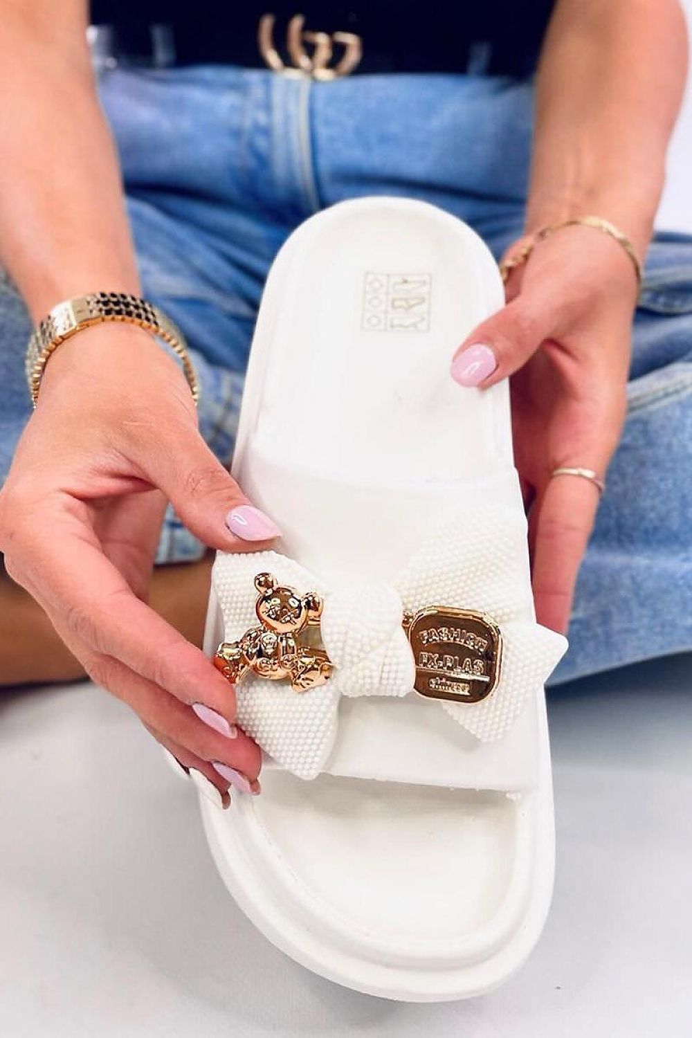 Women's platform sandals. A bow with an adorable golden bear will surely steal your hearts :) This unique model is the most...