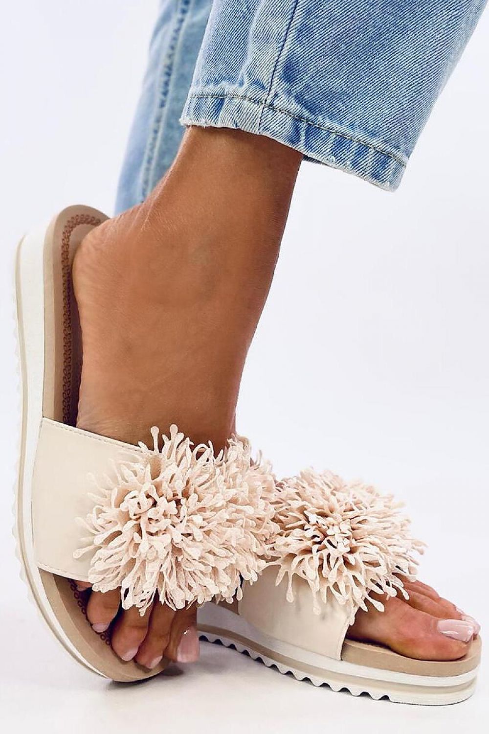 Women's wedge flip flops with a height of 3.5 cm. What catches the eye is the beautiful floral applique, which is a must-have accessory this season :) You will look great in any situation and enjoy comfort with every step! Outer material: synthetic leather.