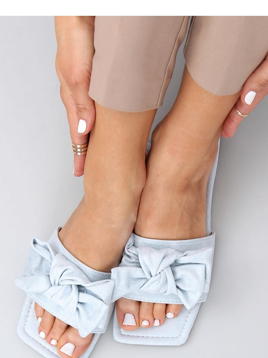 Women's suede flip-flops on a flat sole. The most fashionable, square cut in iridescent finish and with a beautiful bow will surely steal your hearts : ) Flip-flops are comfortable and practical but also very fashionable. Outer material - ecological suede.