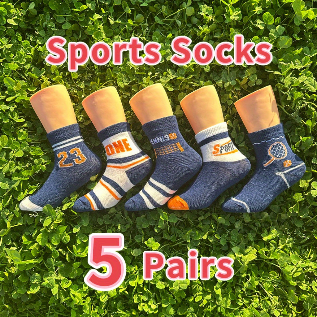 5 Pairs Of Kid's Fashion Cute Pattern Crew Socks, Comfy & Breathable Soft & Elastic Thin Socks For All Seasons Wearing, FS