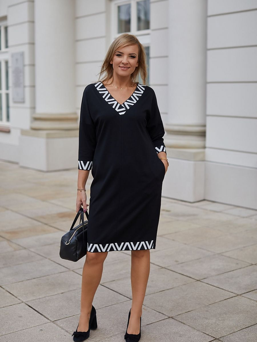 Do you value comfort and convenience? Meet our sporty elegant dress. Why is it so special? Because it was constructed with a wide range of sizes and great versatility in mind. We sewed it from a soft and stretchy knit fabric. So you can dress it for everyday shopping as well as for occasional meetings with friends. Careful sewing and interesting application will make you feel special. The dress has inset pockets. It is perfect for larger sizes.