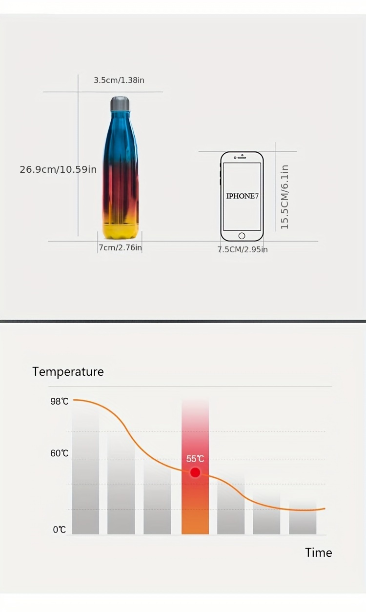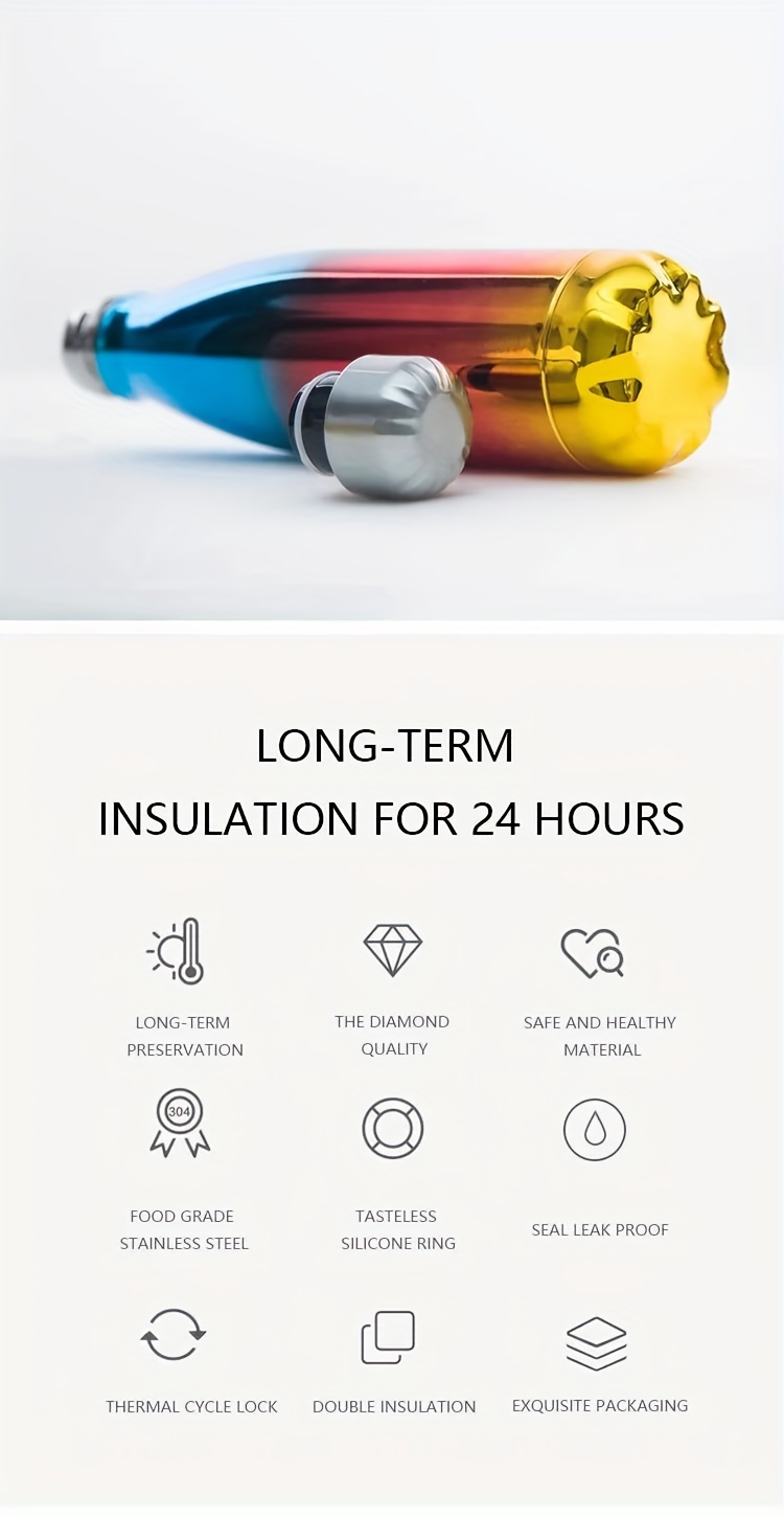 Double-Wall Insulated Bottle 500ML Thermal Cup, Fade Color Vacuum ,Stainless Steel Hot Ice Water Coffee Sports Bottle FS