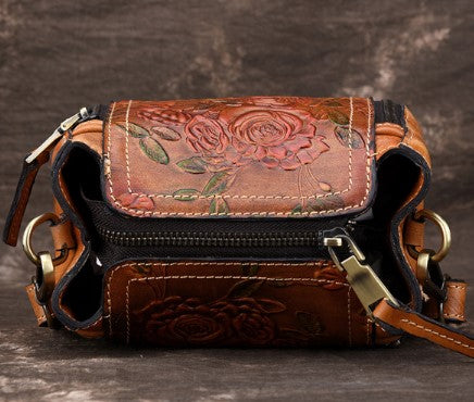 Fashionable Leather Vintage hand embossed handbag with shoulder inclined water bucket