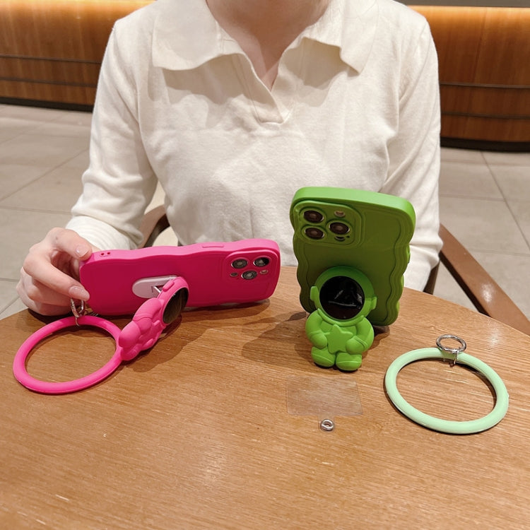 For iPhone 12 3D Astronaut Holder Skin-feel Silicone Phone Case with Wristband(Green)