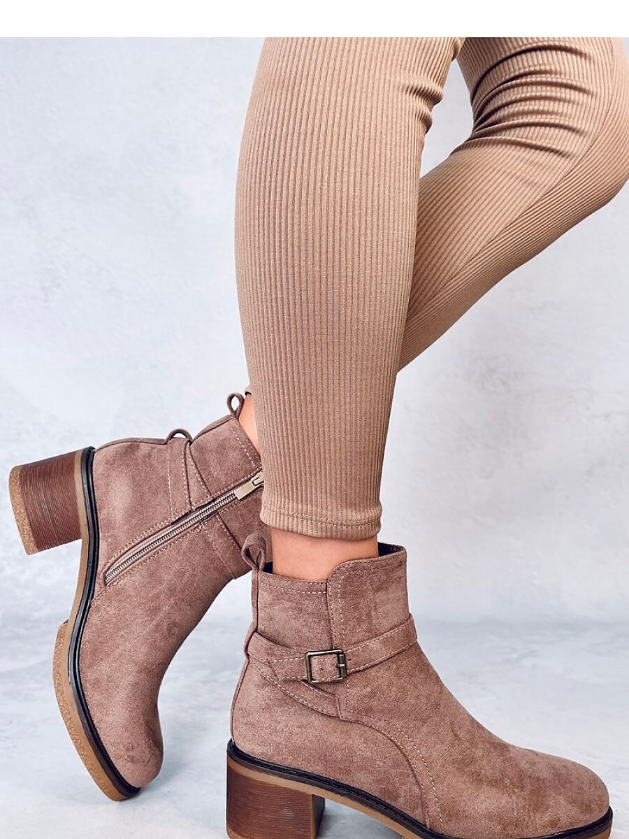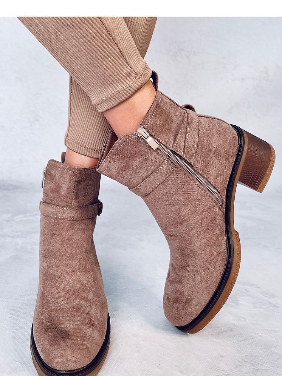 Women's boots on a wide heel with a height of 5,5 cm. This is a timeless model that will be perfect for any everyday situation : ) A convenient solution is the zipper closure on the side of the upper. Do not let yourself be persuaded any longer : ) They are made of eco-suede, and the interior is lined with soft fur.