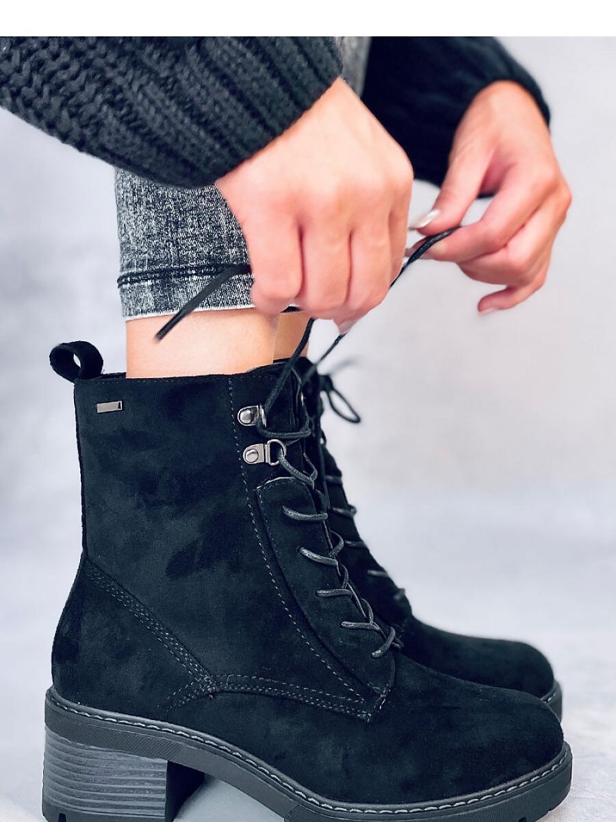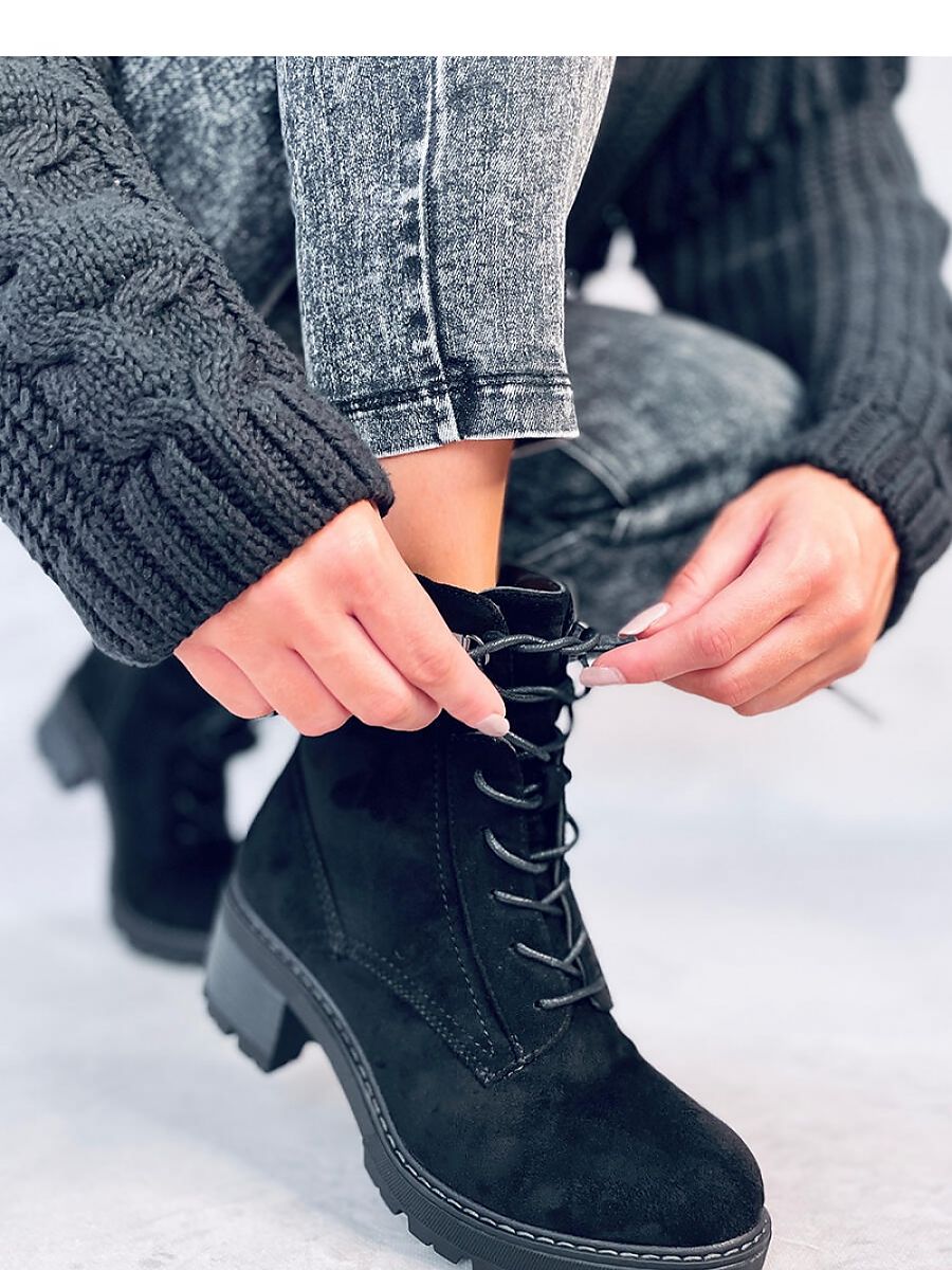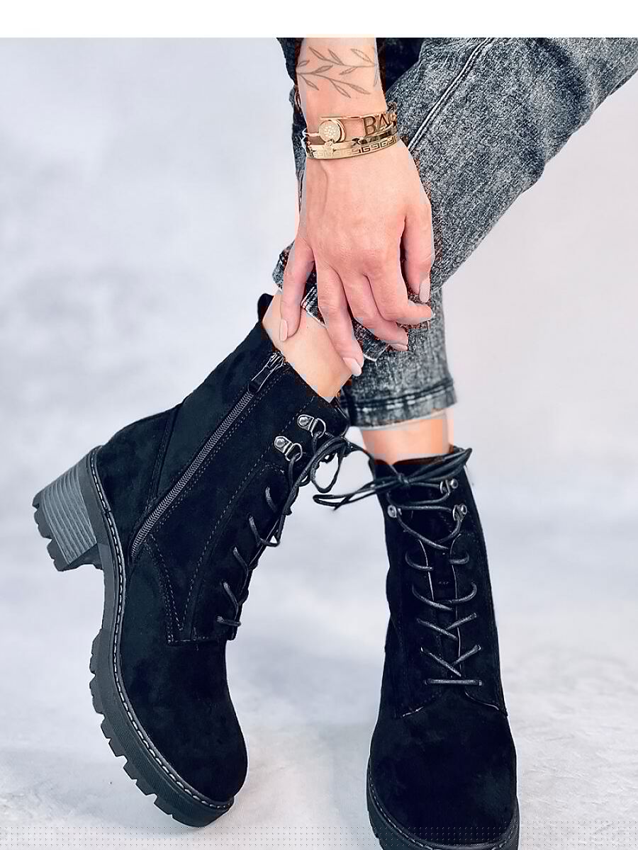 Women's suede boots on a comfortable 5.5 cm high heel and protector. The model is entirely traditionally laced, but also has a practical zipper closure for easy putting on. If you appreciate comfort and classic cuts then you must have them : ) They are made of very nice to the touch organic suede, which emphasizes their unique style. The interior, on the other hand, is lined with soft fur.