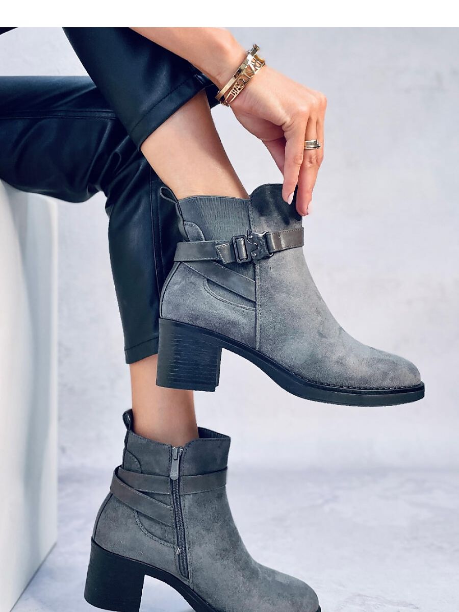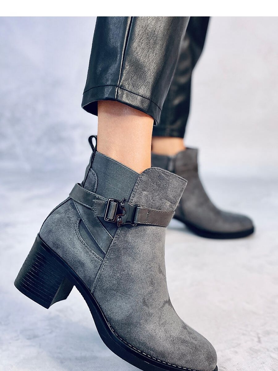 Women's suede boots with a buckle. If you appreciate comfort and simple, classic cuts, then surely this model on a wide heel of 6 cm height will meet your expectations : ) The comfort of putting them on is ensured by a zipper on the side of the upper, and the elastic insert refers to the slippers. They are made of eco-suede, and the interior is lined with soft fur.