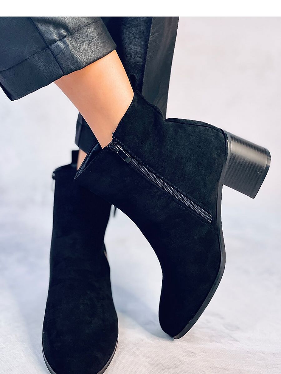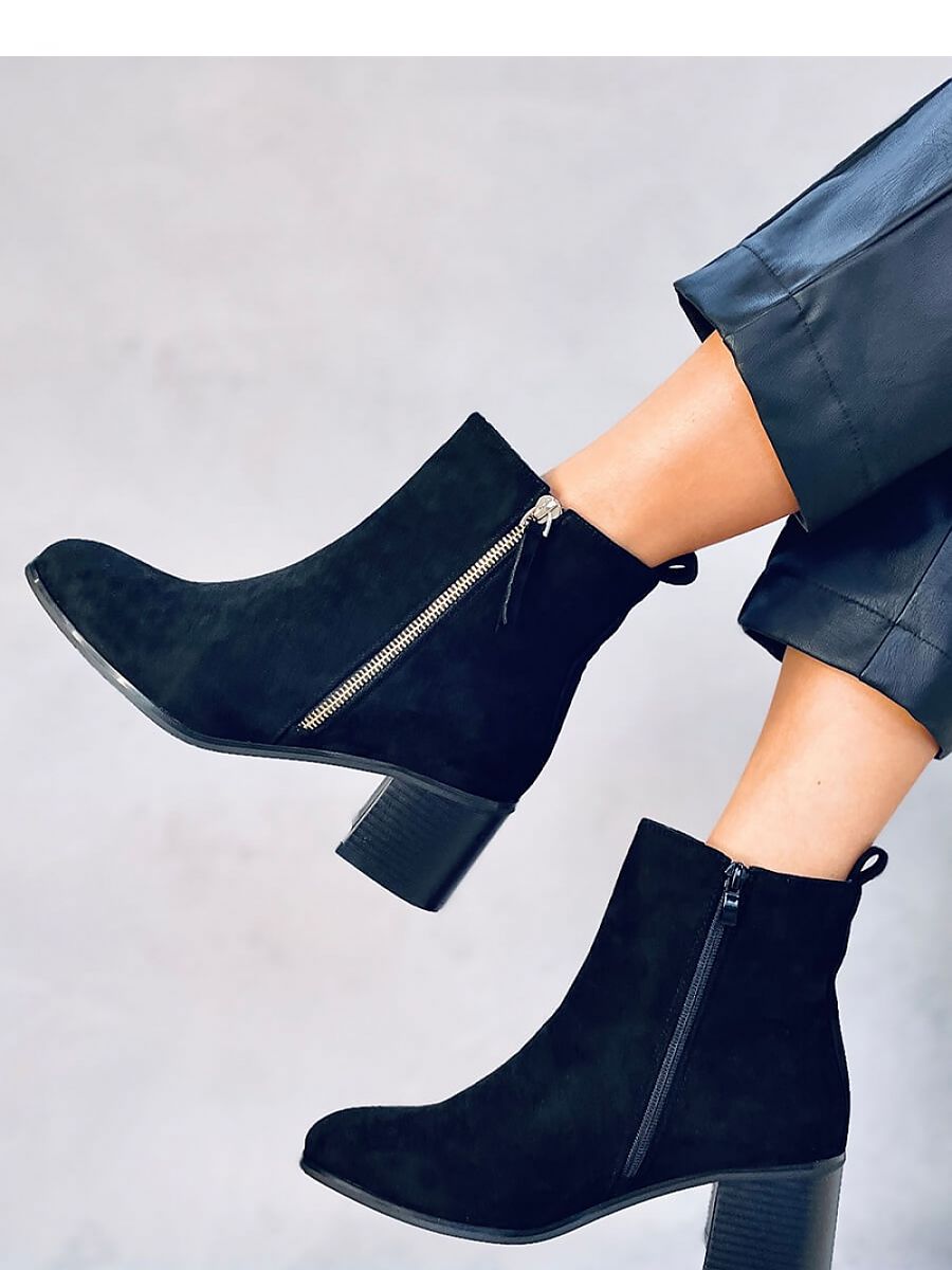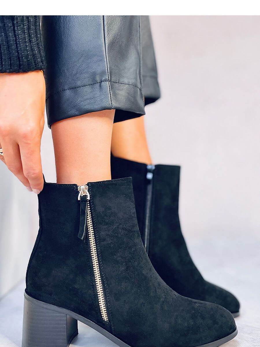 Women's suede boots with a gold zipper. Model on a stable heel with a height of 6 cm is sure to delight fans of comfort : ) See for yourself how special you will feel in these boots! Their undoubted advantage is the practical zipper closure on the side of the upper. They are made of eco-suede, and the interior is lined with soft fur.
