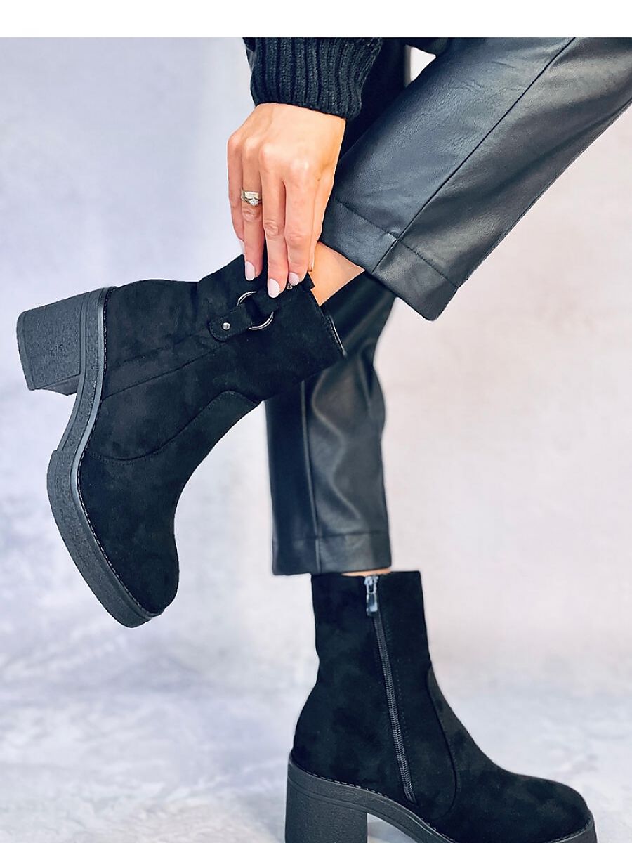 Classic women's suede boots. The wide 7 cm high heel is not only stable, but also fashionable this season. While the zipper closure on the side of the upper is a very practical solution. Reach for them now! They are made of eco-suede, and the interior is lined with soft fur.